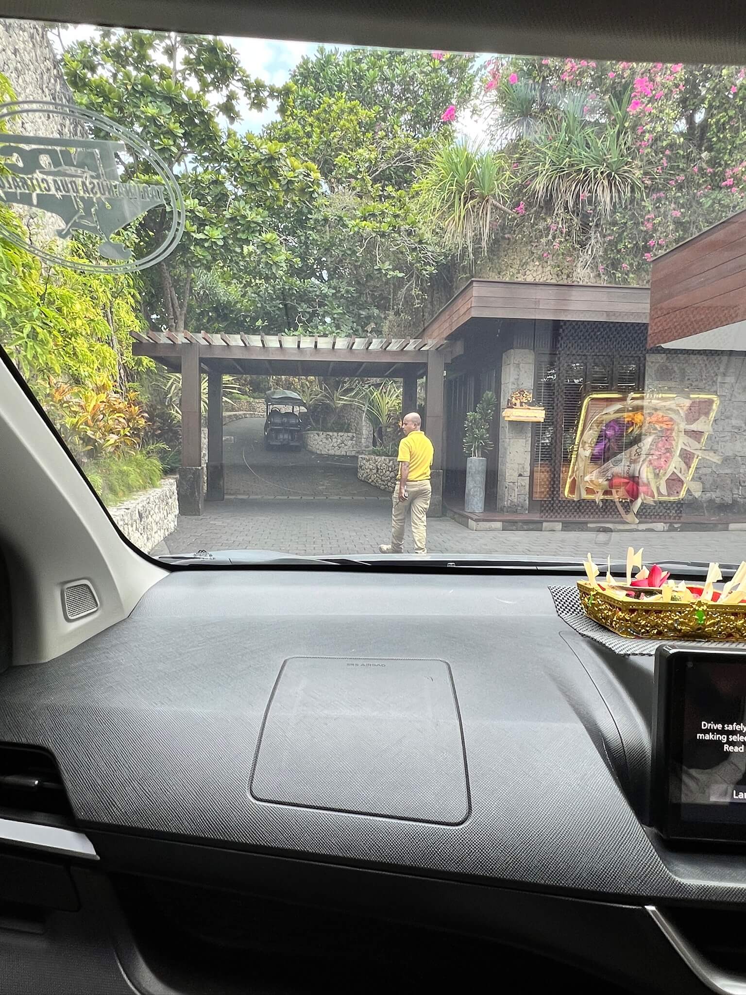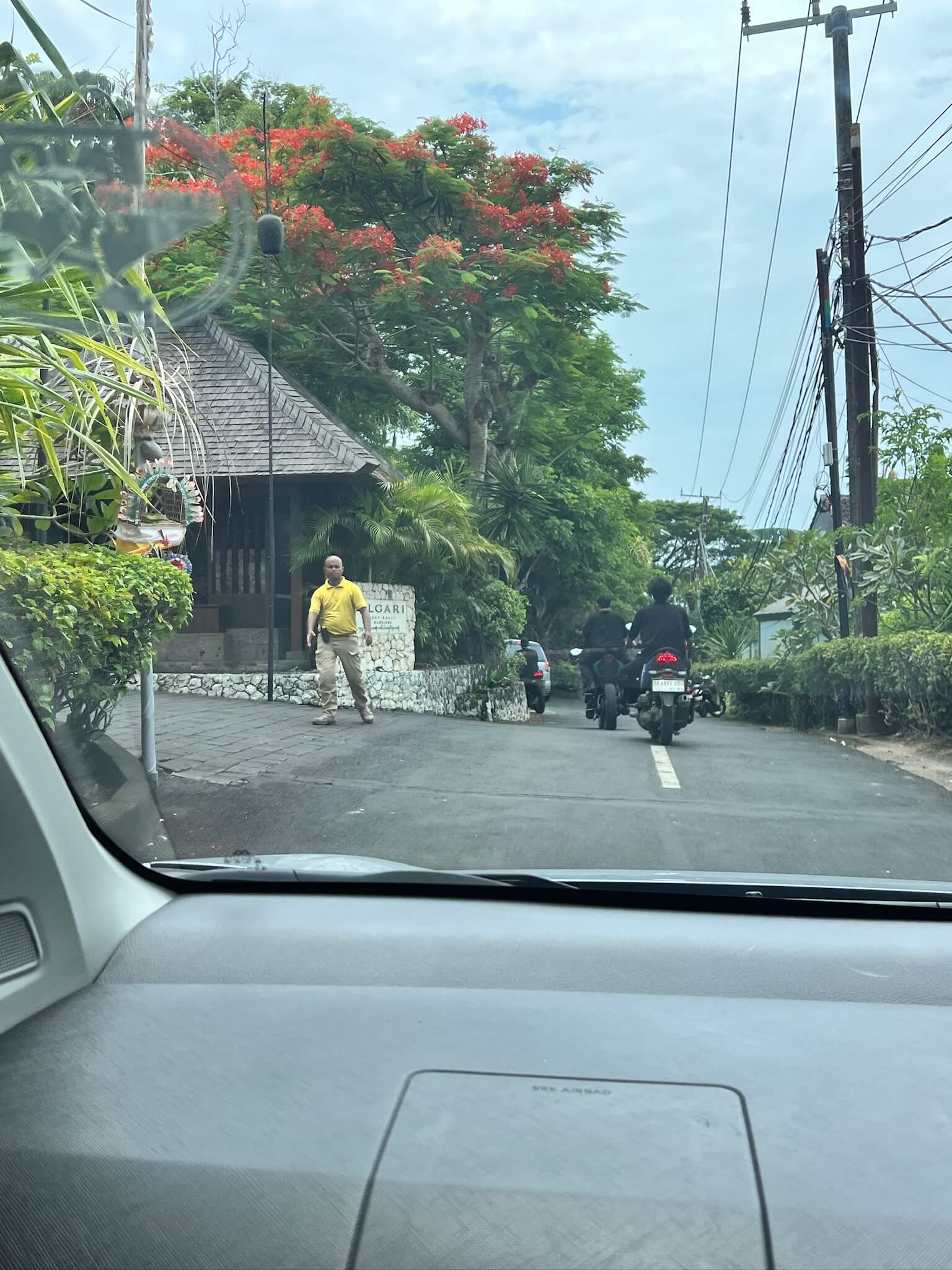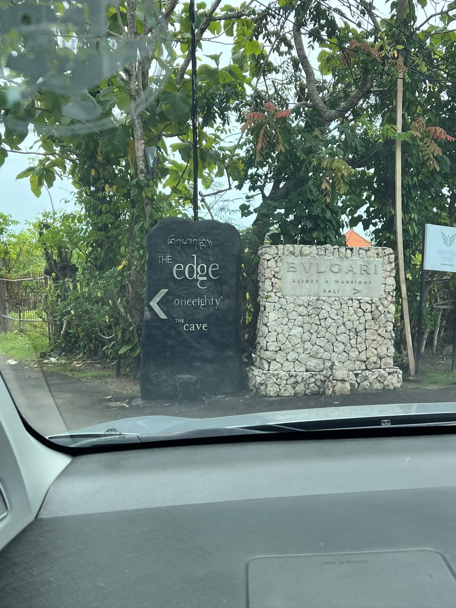メインロードからしばらく走り、途中でシックスセンシズの看板を見つけたりしながら、ブルガリのセキュリティゲートに到着しました。