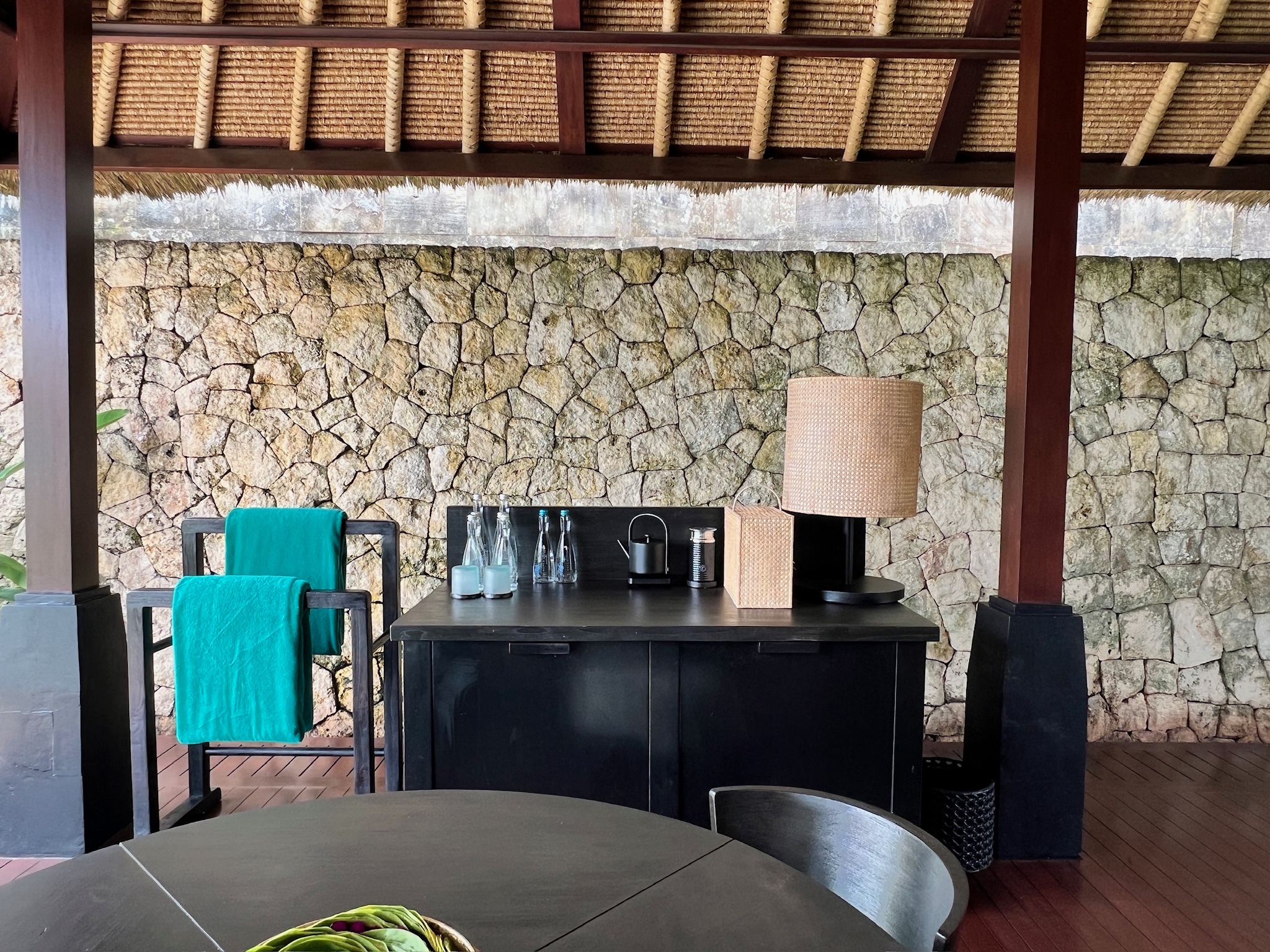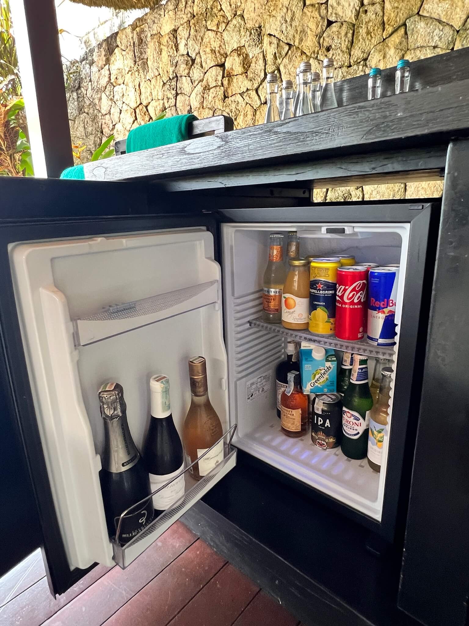 ミニバーもそちらにあり、初めての屋外リビングの体験に興奮しました。