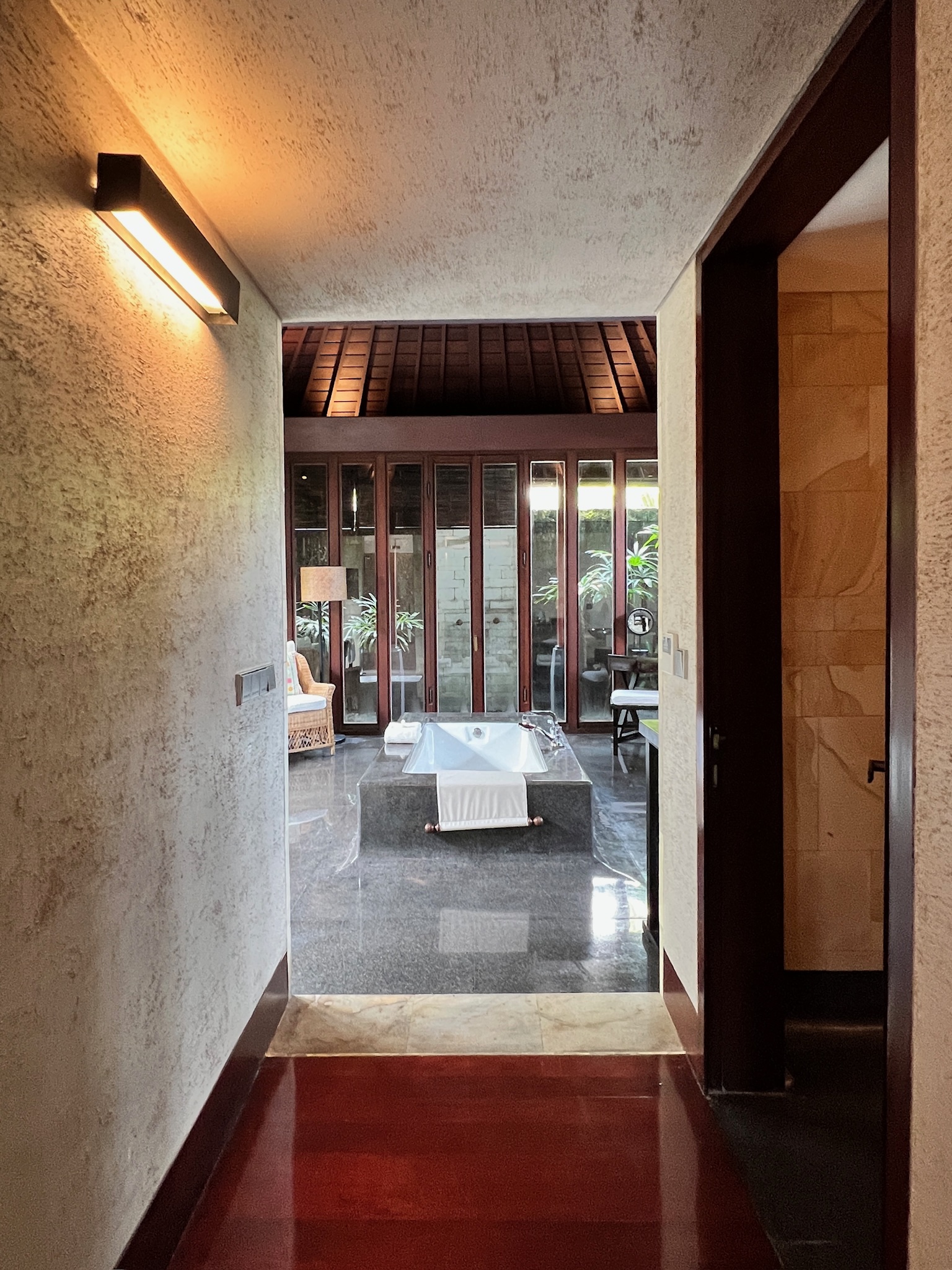 - 廊下からバスルームを見る