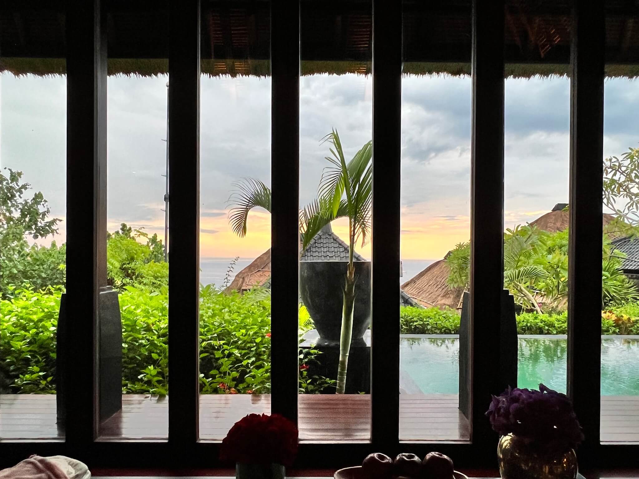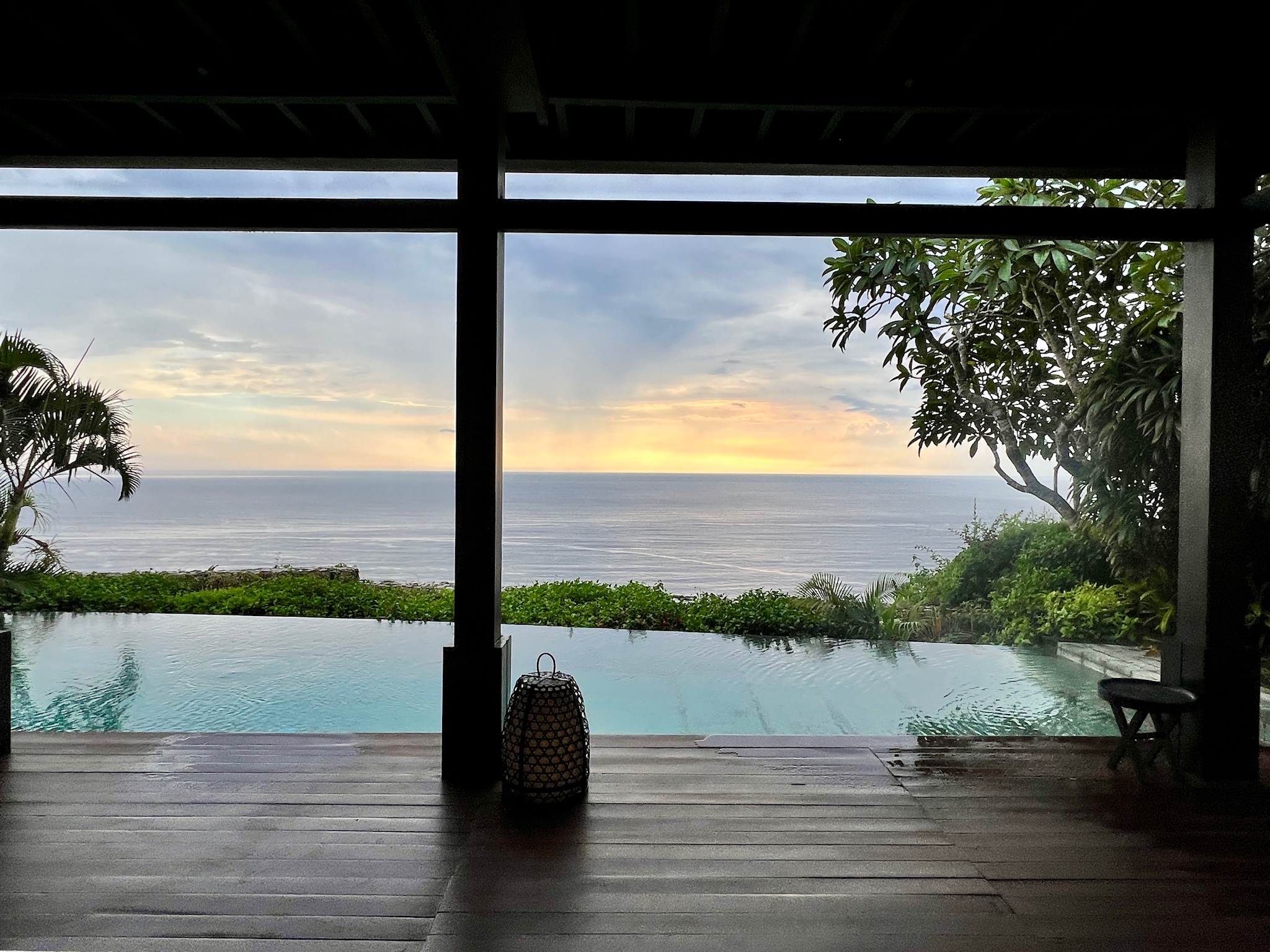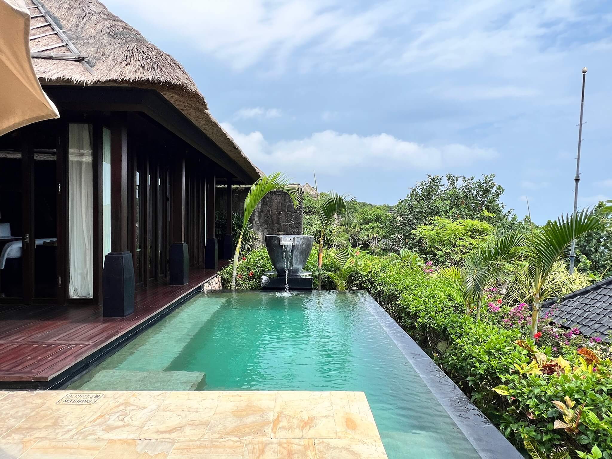 リビングの前にはプライベートプールも付いており、海も望めとても贅沢な体験でした。