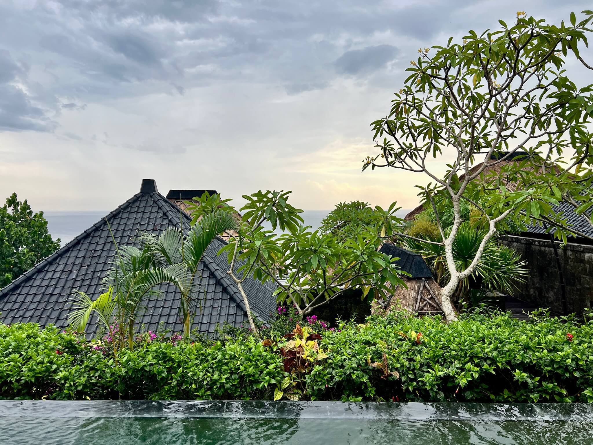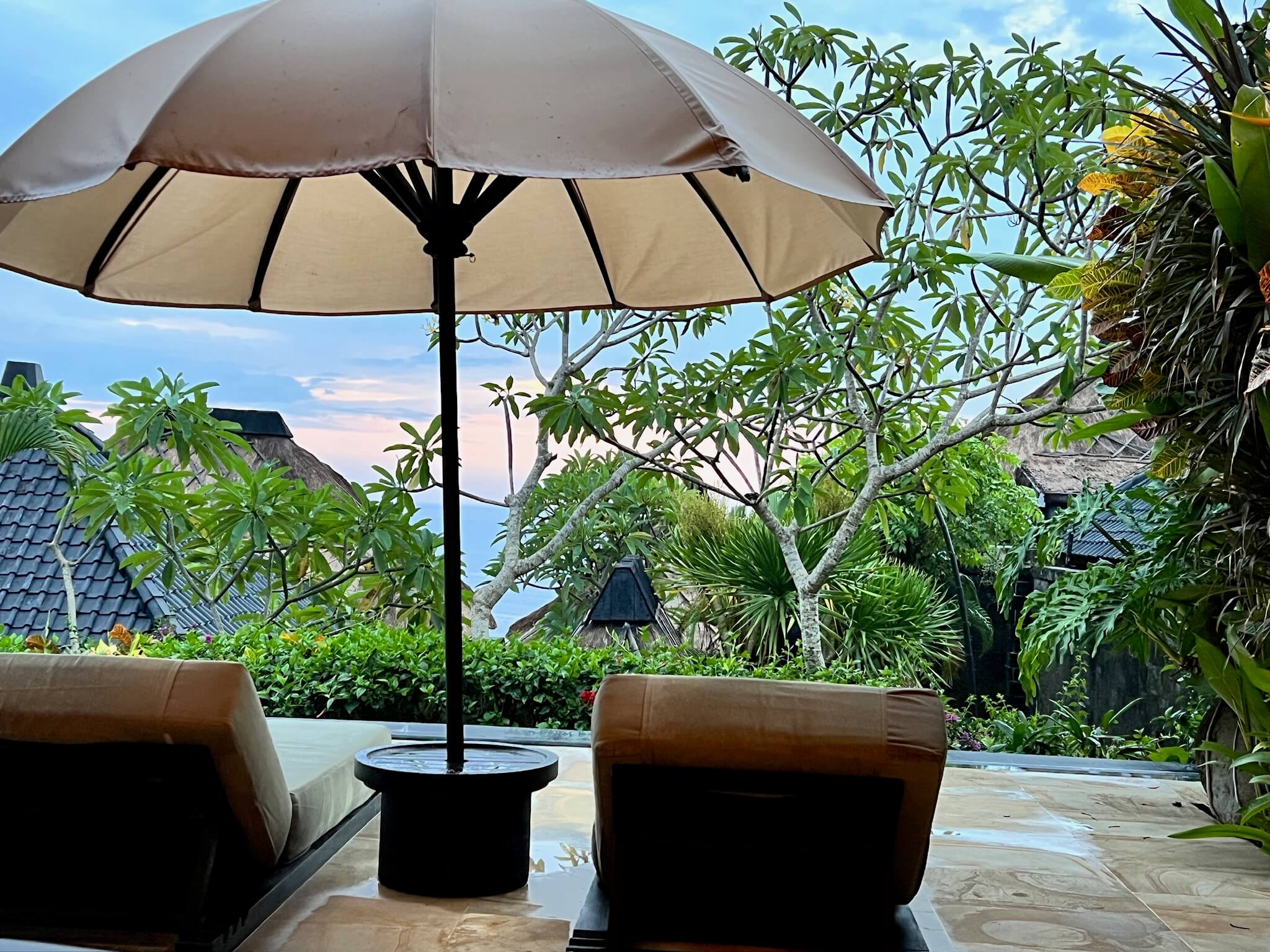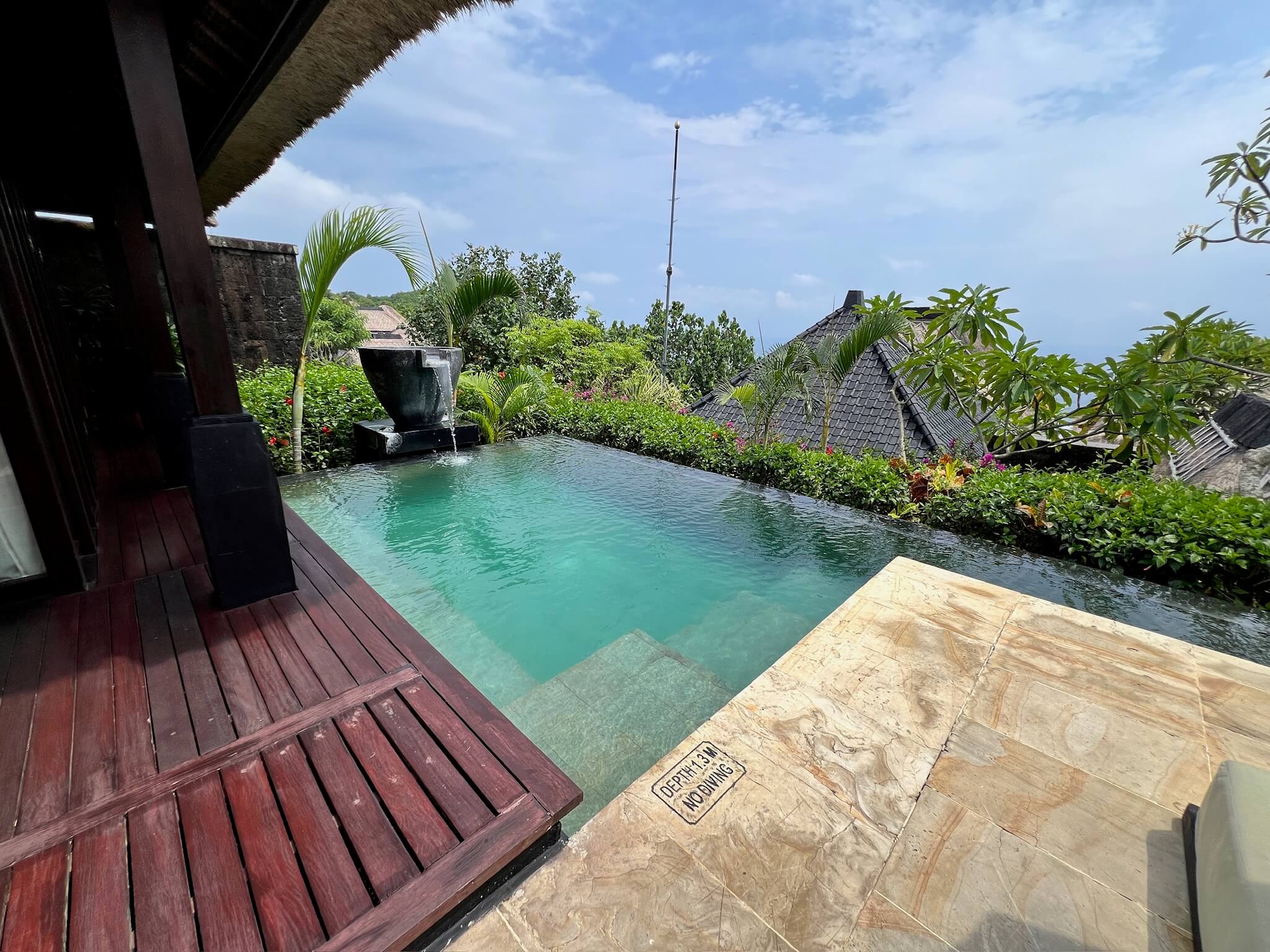 リビングの前にはプライベートプールも付いており、海も望めとても贅沢な体験でした。