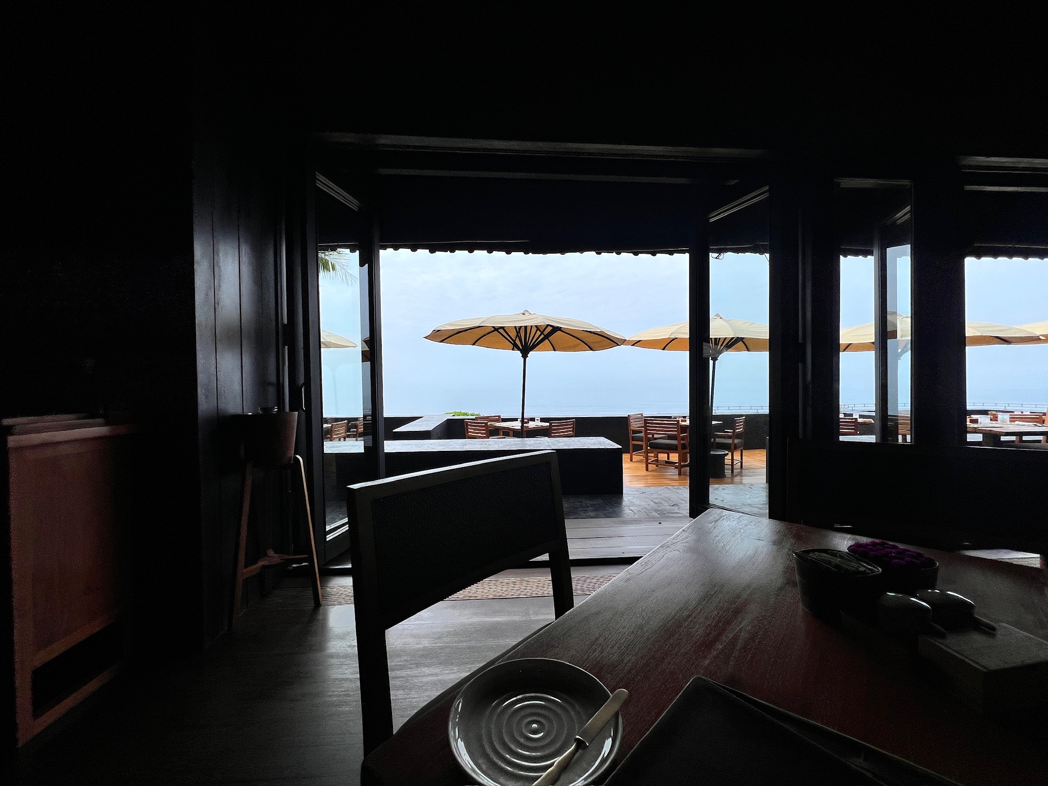 漆黒のダイニングで味わう朝食