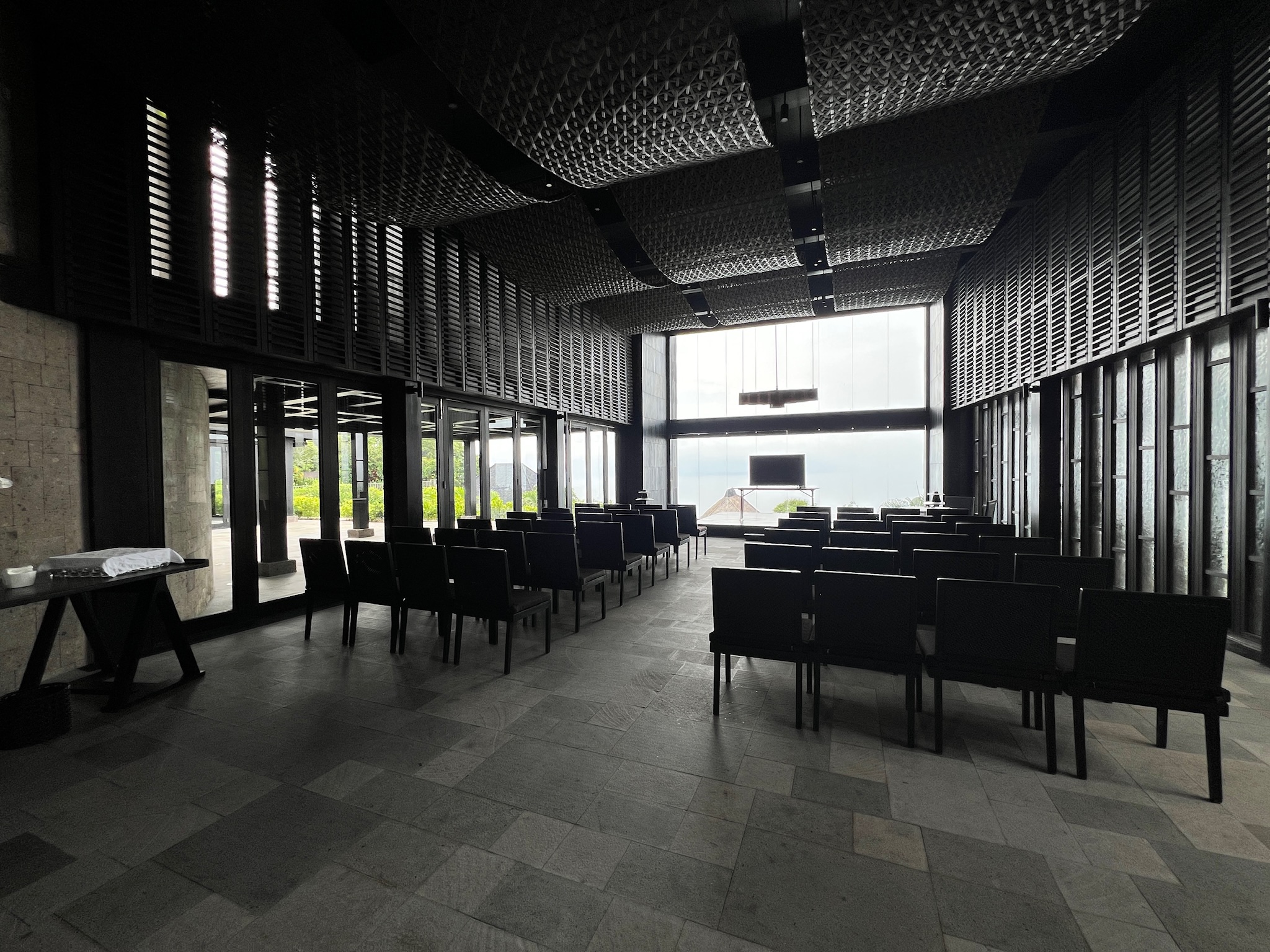 内装は漆黒、という印象で、黒い内装は外の光が反射して、ボヤッとしてしまっていたのは少し残念でした。黒を使うのは難しいなと実感しました。