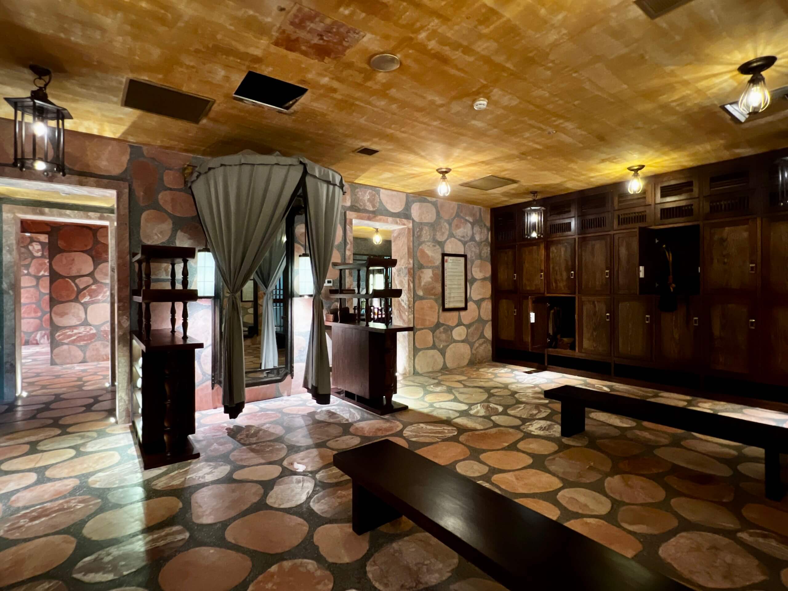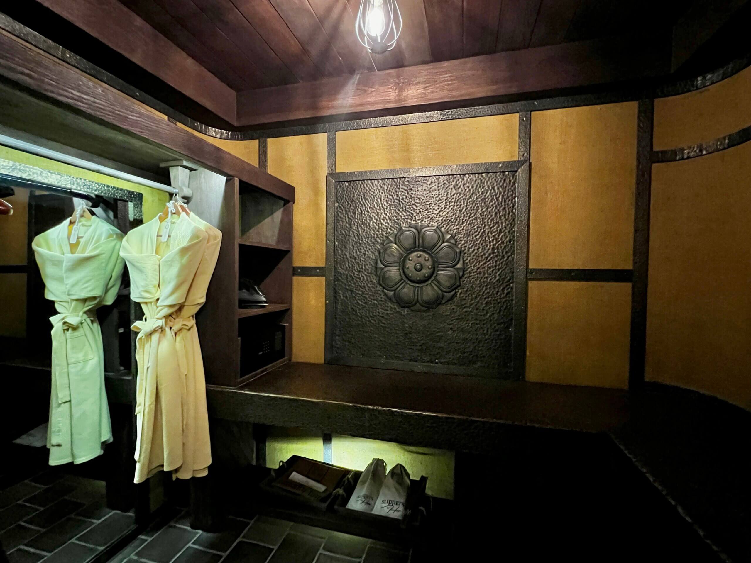 そして大きな更衣室に到着しました。ここで専用着に着替え、サウナとジャグジーに入るように言われました。