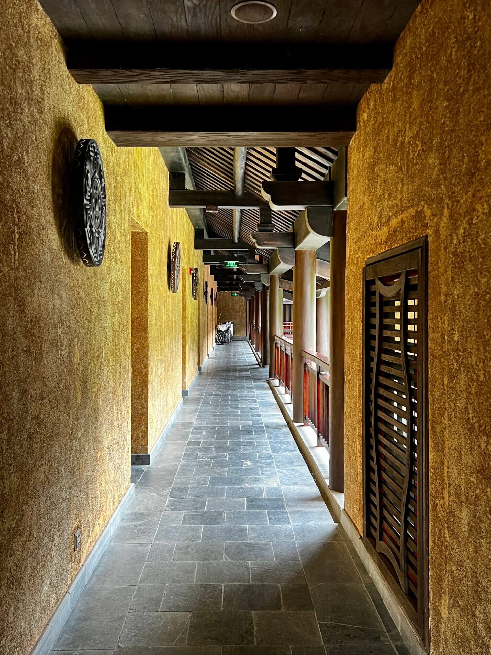 その時に、ホテルの奥にまた別の建物があり、長い通路で繋がっていることに気がつきました。