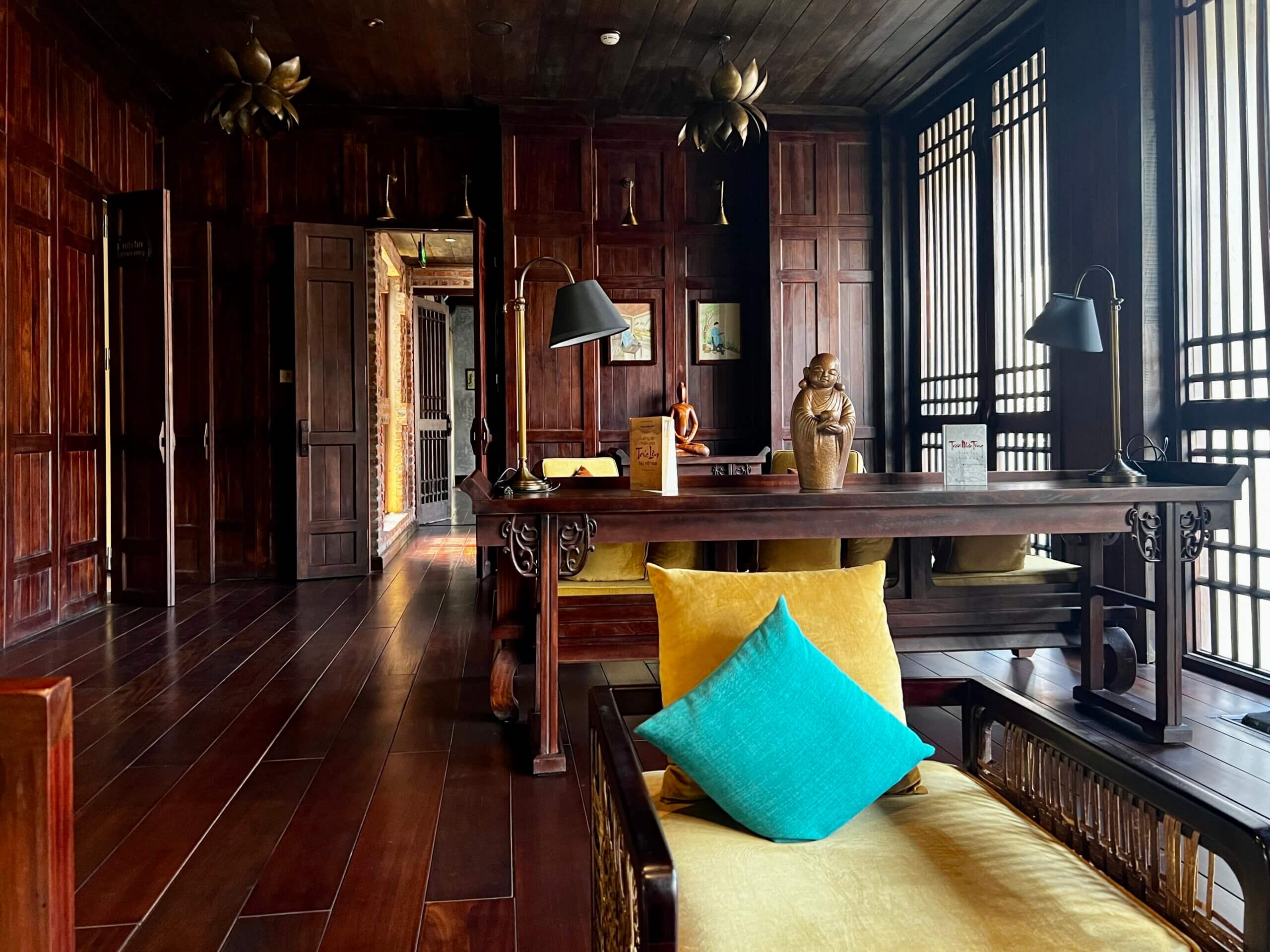この客室はトラン王朝を呼び起こす要素でデザインしたらしく、トラン王朝そのものはよく知りませんが、それでも時代を遡った気分になれるというのは間違いないです。
