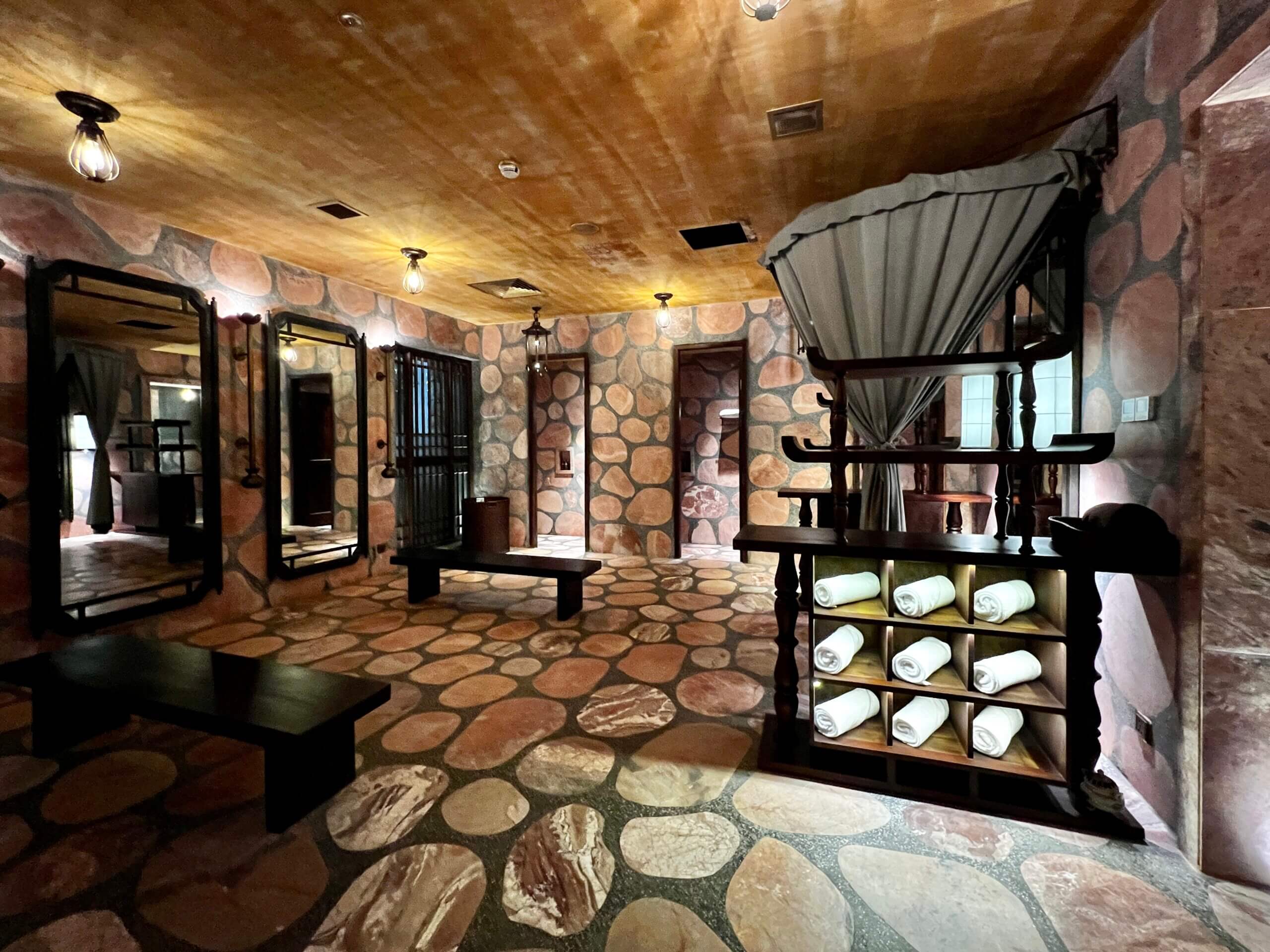 サウナに入り、シャワーで汗を流し、ジャグジーに浸るのを2セット行い、更衣室のシャワーを最後に浴び、新しい館内着に着替えてスパ室の方へ向かいました。