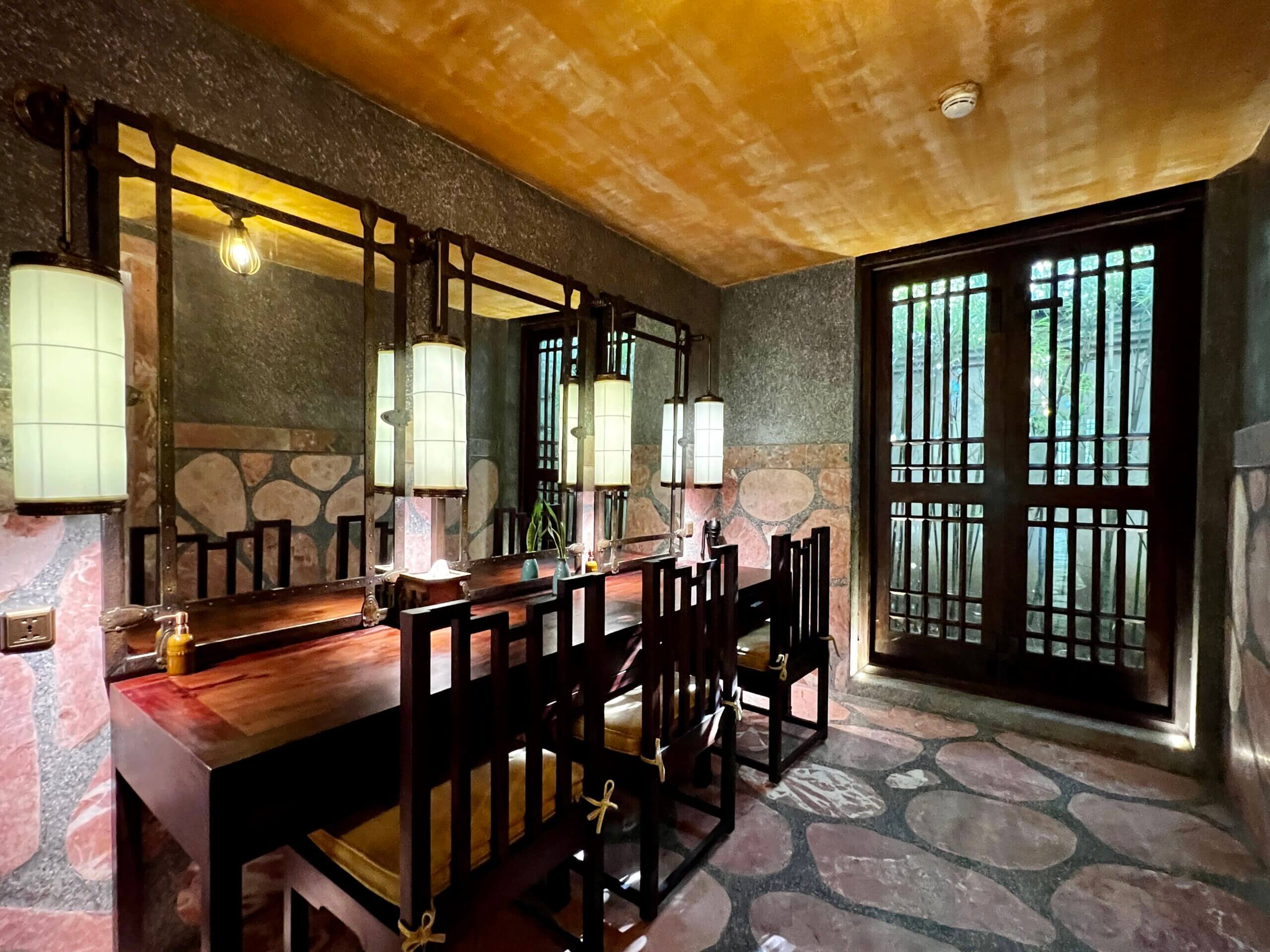 向かう途中に大きなホワイエがあったり、中庭のある半屋外廊下を通ったりして、その空間ひとつひとつが自然素材で作られていて素晴らしかったです。