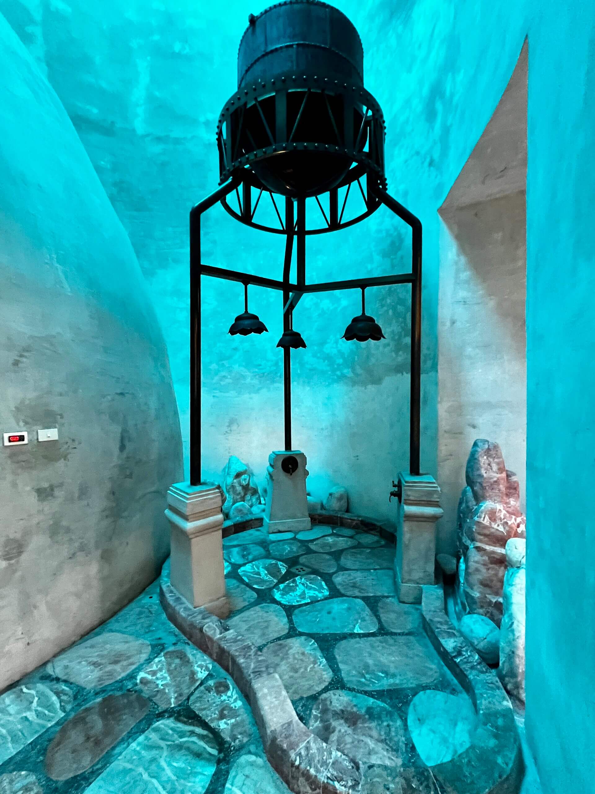 その壺らへんからゆらゆらと揺れた光が出てきていたのですが、よく見ると壺の中に照明を仕込んでいるのです。面白い仕掛けです。