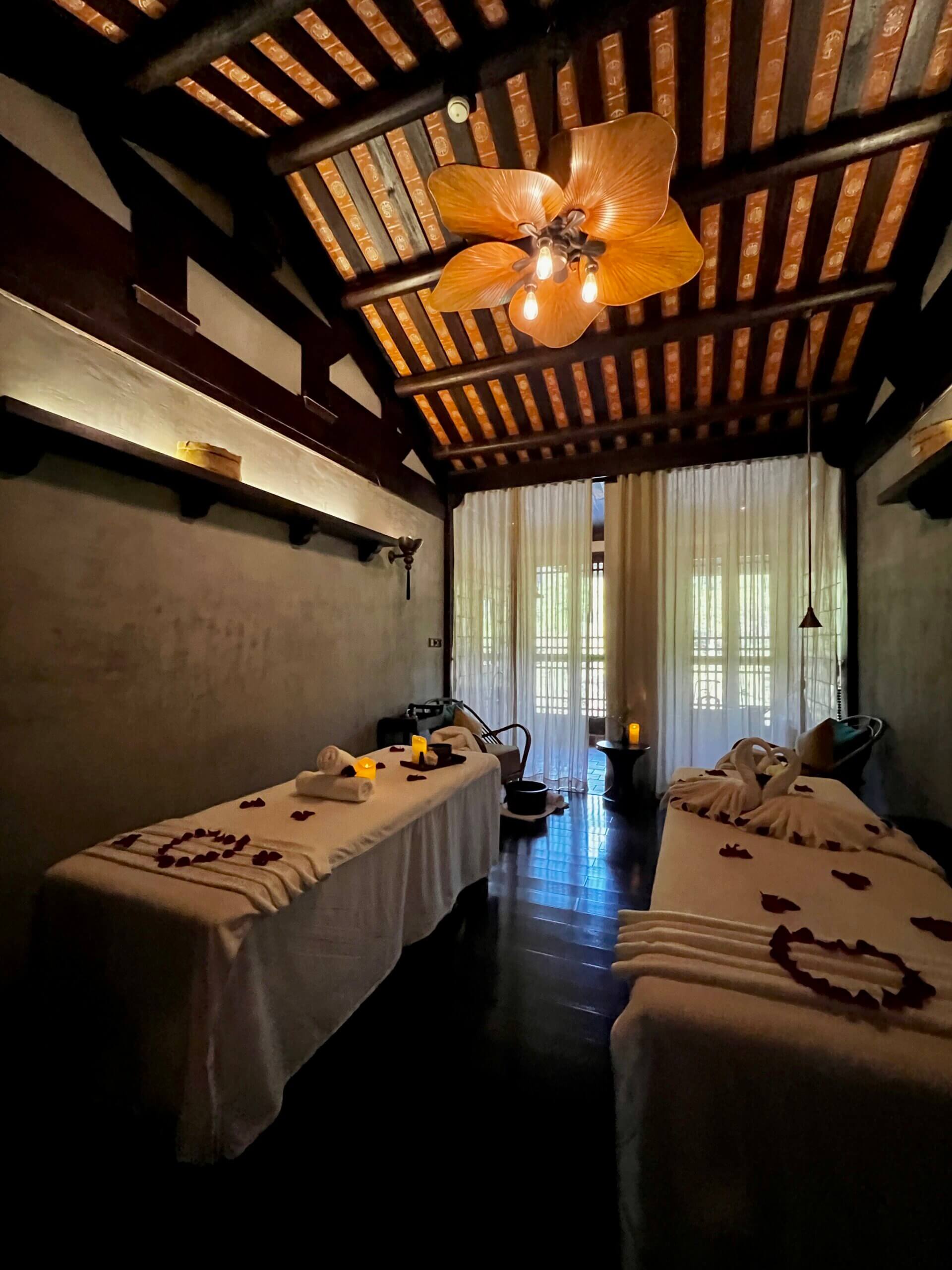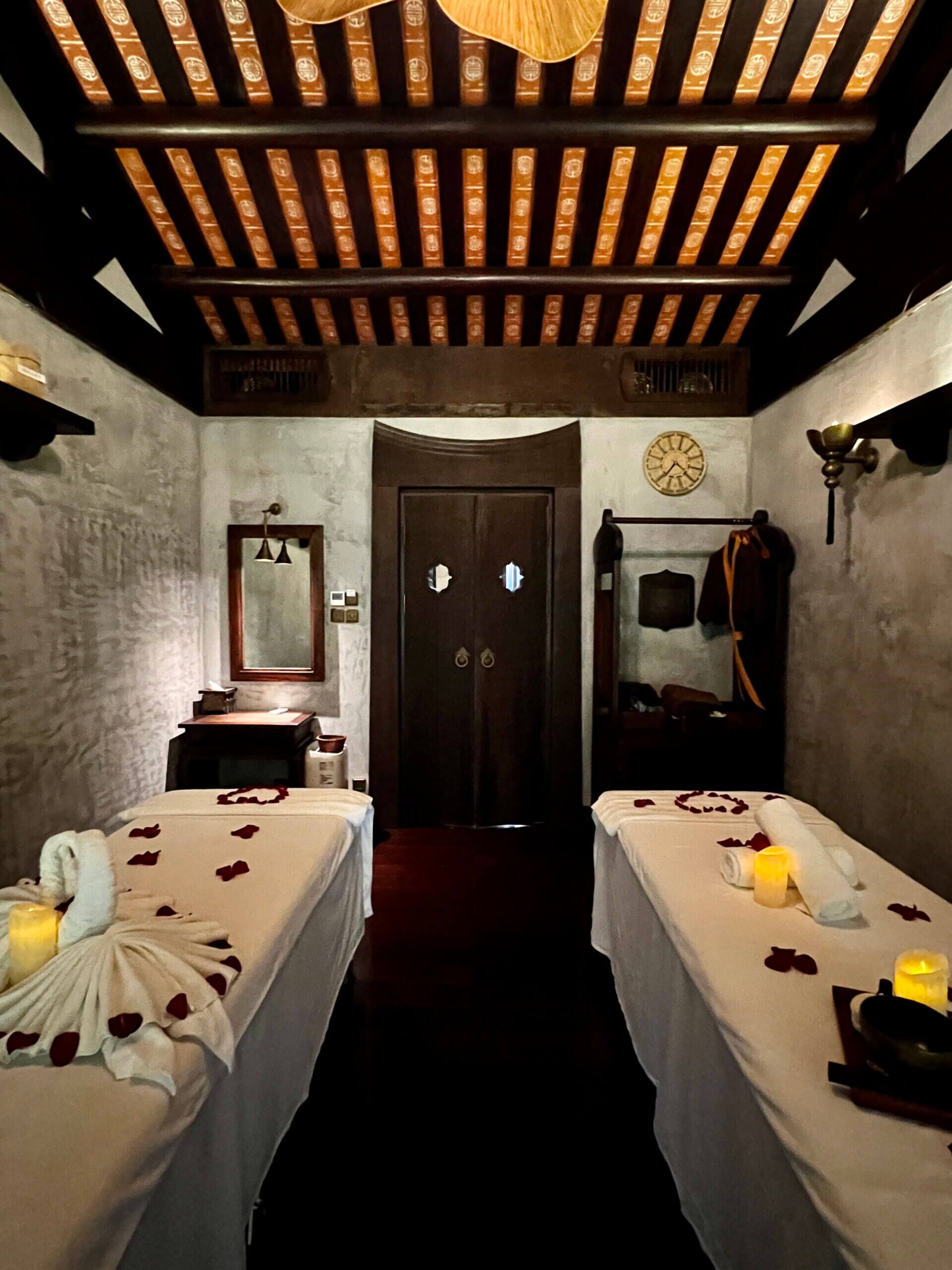 そしてスタッフさんが来て、ベッドにうつ伏せになるように言われ、「ゴーン」という鐘の音と共にお待ちかねのスパが始まりました。