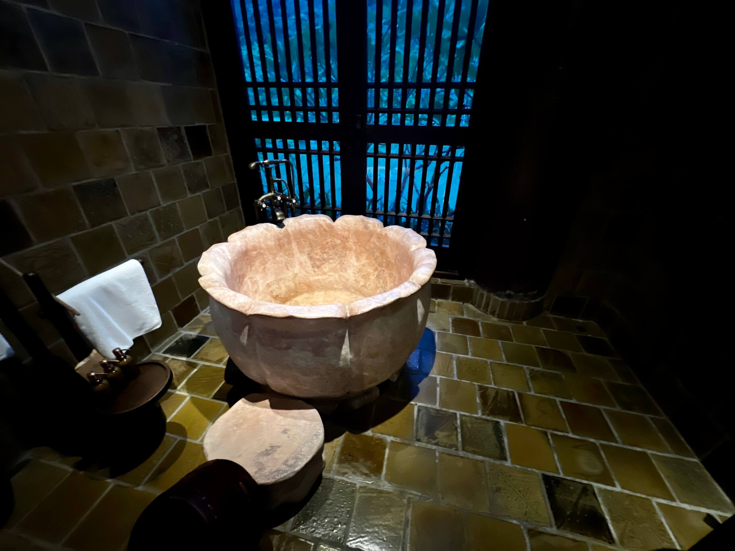 そしてマッサージの後は窓際のハーバルバスに入りました。ハーバルバスはハーブが浮いたお風呂で、そこで香りと共に体を癒すものです。