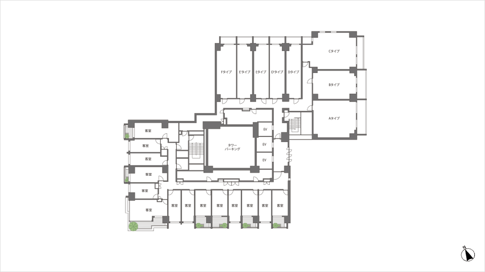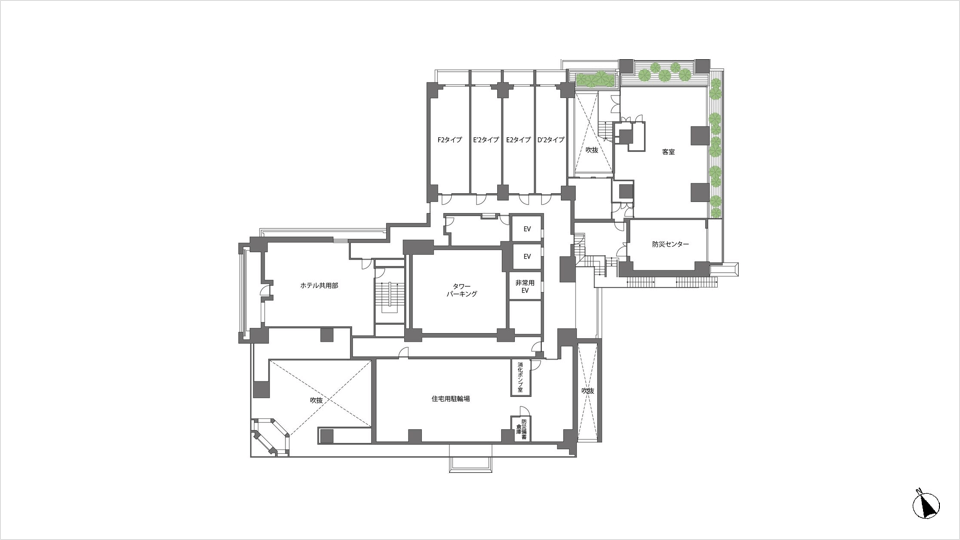 ホテルとマンションが同一建物にあります。ただそういった複合建物はたまにあるのですが、今回は同一フロアにホテルとマンションがあります。