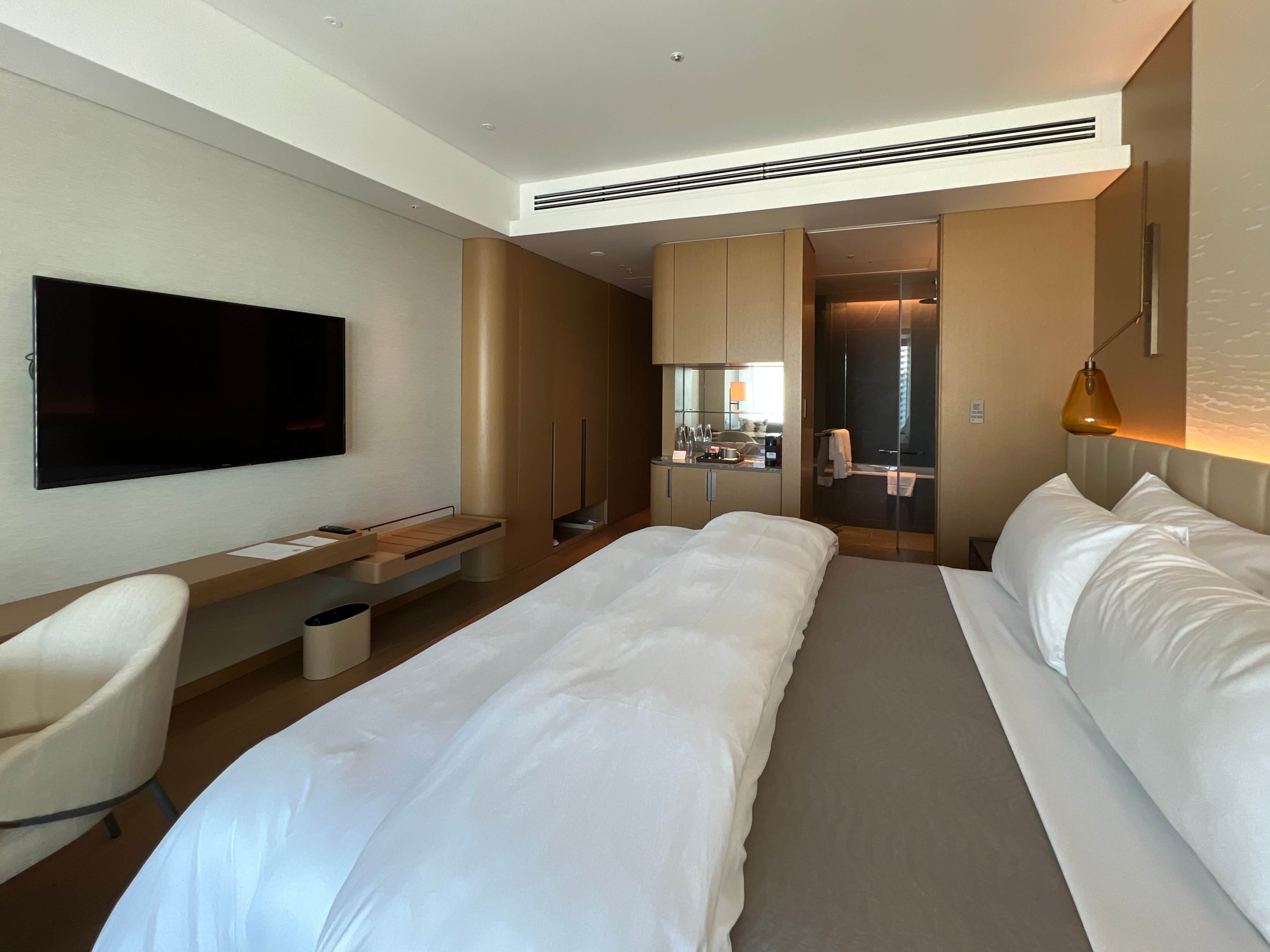 最上階でチェックインを済まし、客室へ向かいます。今回泊まったのは14階で、部屋タイプとしてはオーソドックスなベイルームというタイプです。
