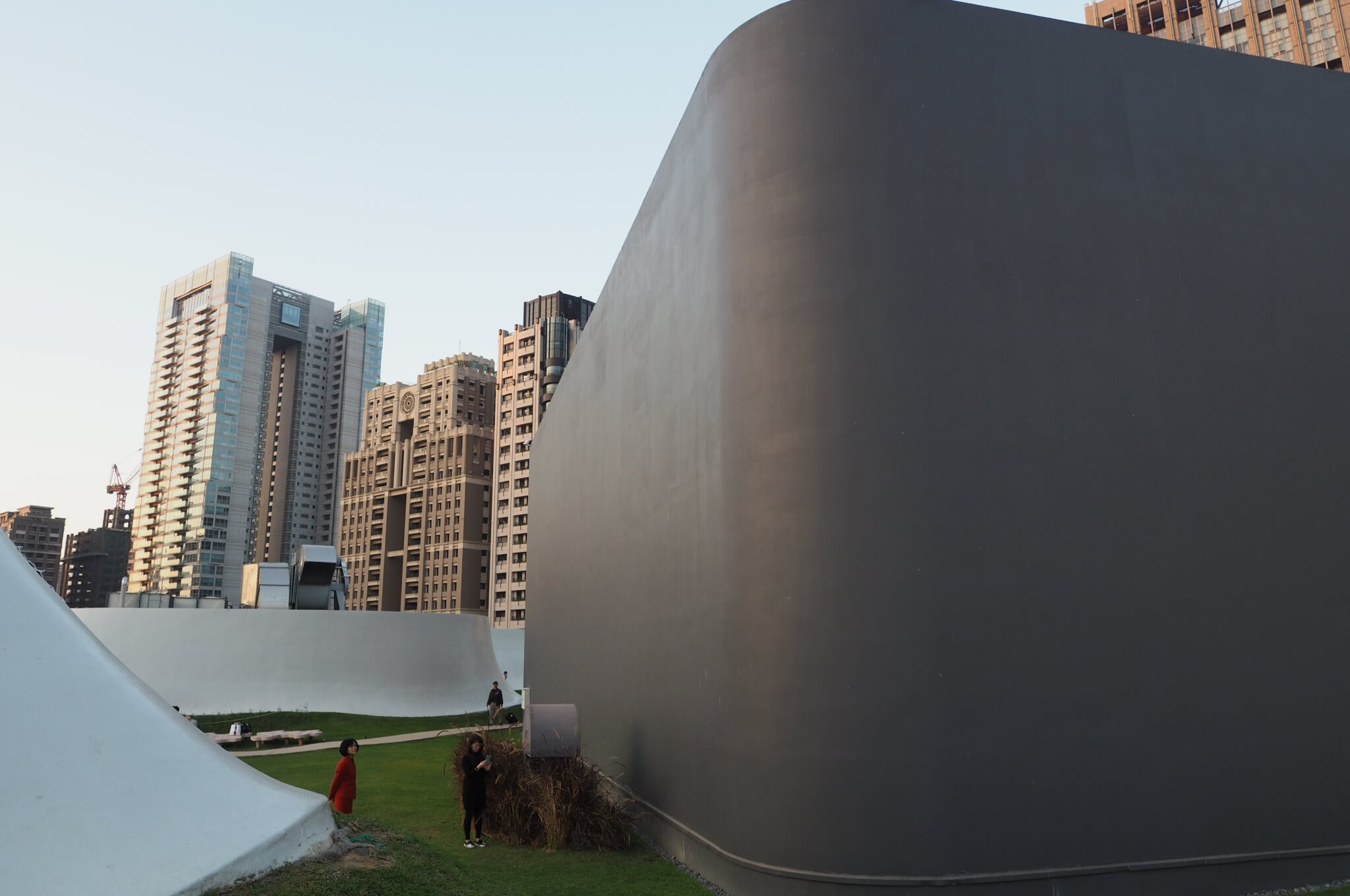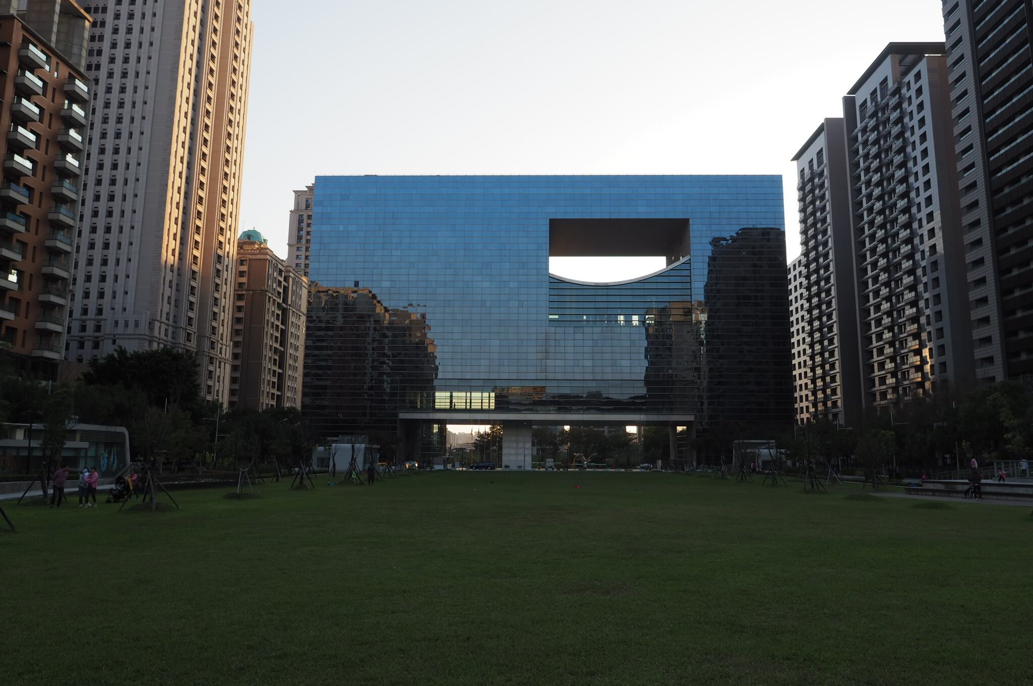 市政公園という十字の軸線を持つ公園の一端に歌劇院はあります。臺中市政府と臺中市議会の箱型の外郭を持つ建物が直線上に相対していて、歌劇院はそれに直交して、これもまた外郭が直方体なのです。