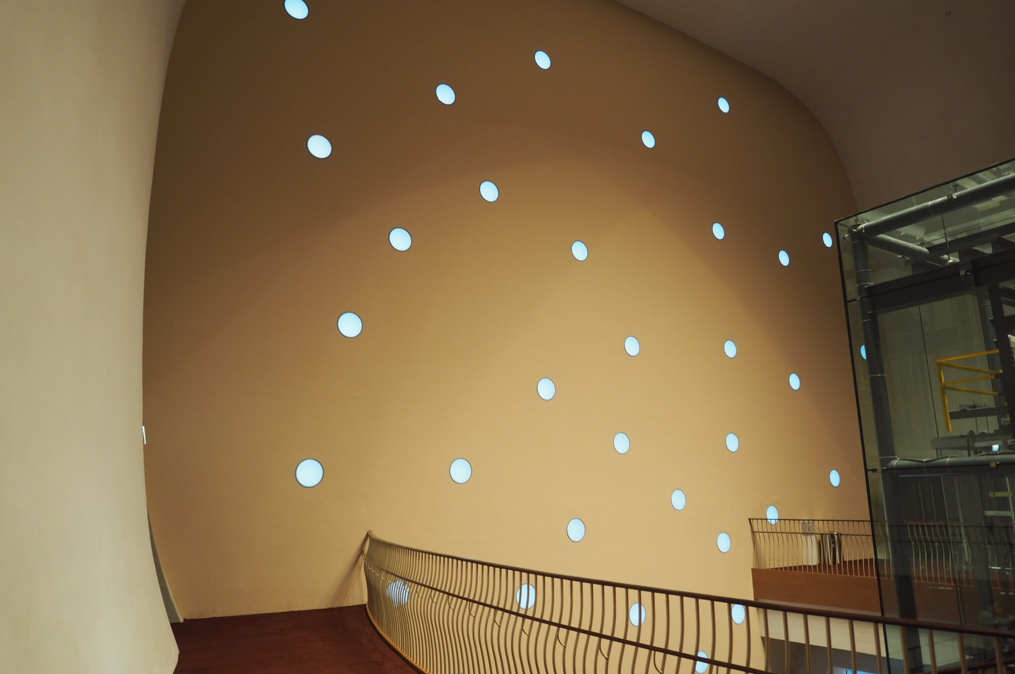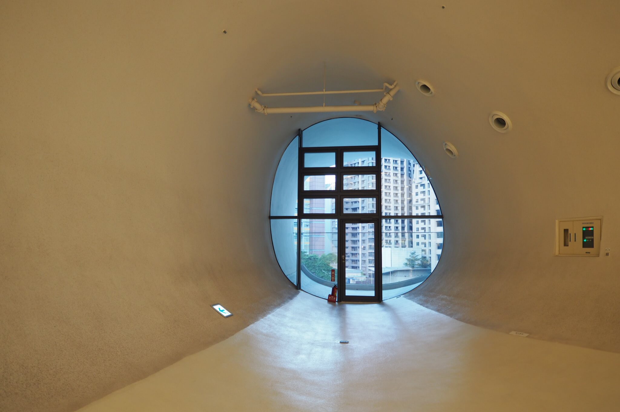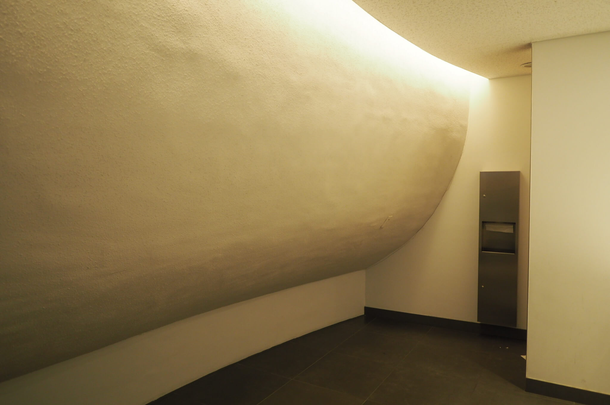 しかしそれは杞憂だったようです。5階がまさに山谷のある床で、白塗りだからなのか視覚では察知しにくいのですが、足が微妙な勾配を感じ取ります。近くで歩いていた人は「あれっ?」という顔をしながら足元を見ていました。