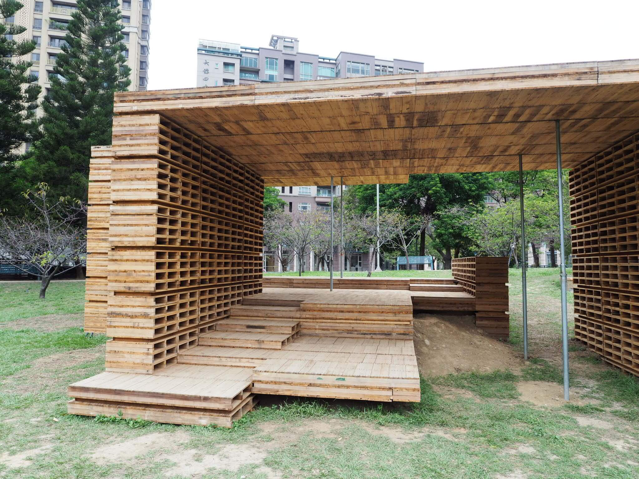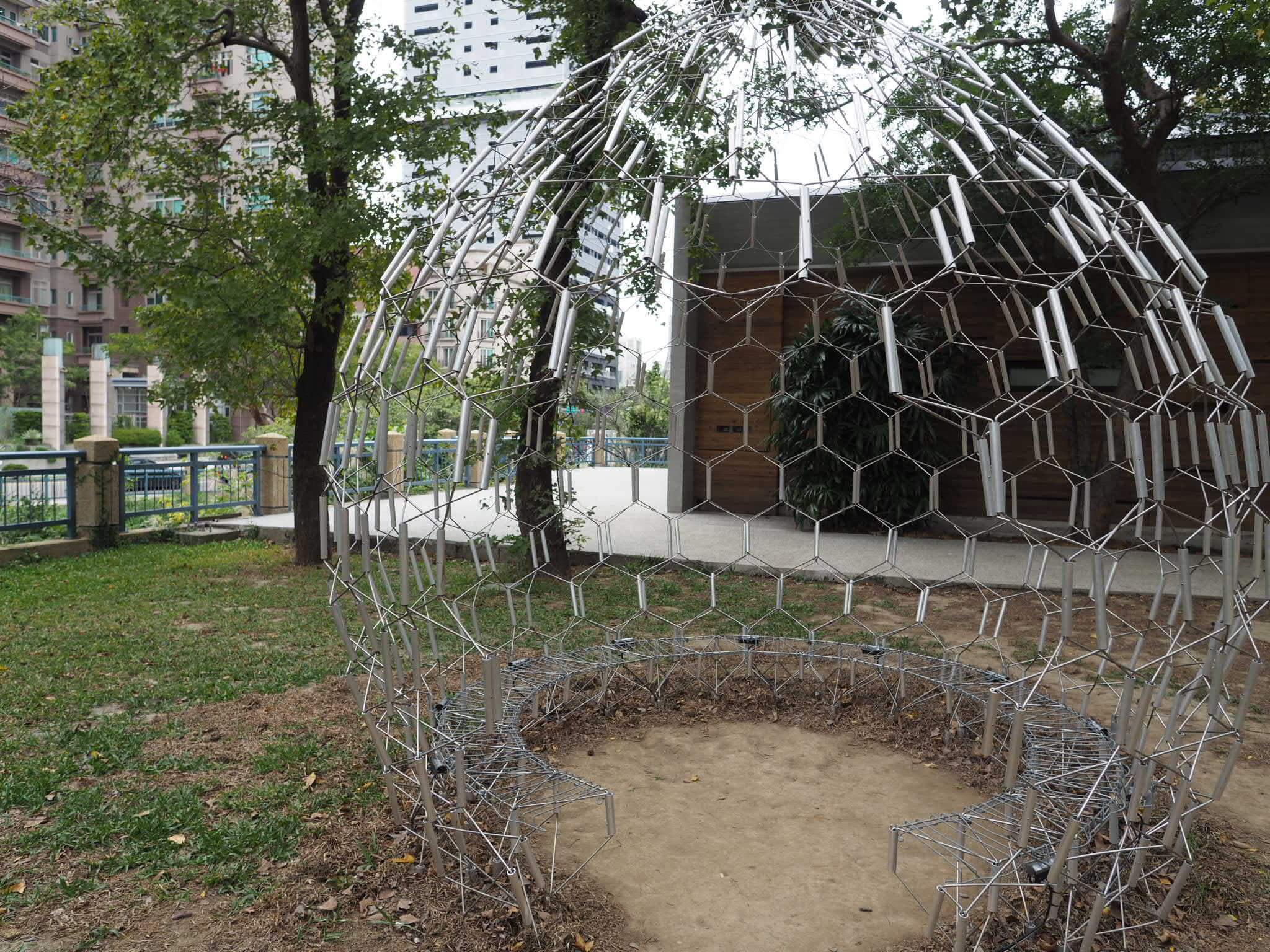 公園内には台湾の建築家による屋外展示がありました。すべて自分が中に入ったりして体験できるもので、それぞれの素材が異なっていて面白かったです。しかし中国語が読めないので、設計意図は詳しくは分かりませんでした。