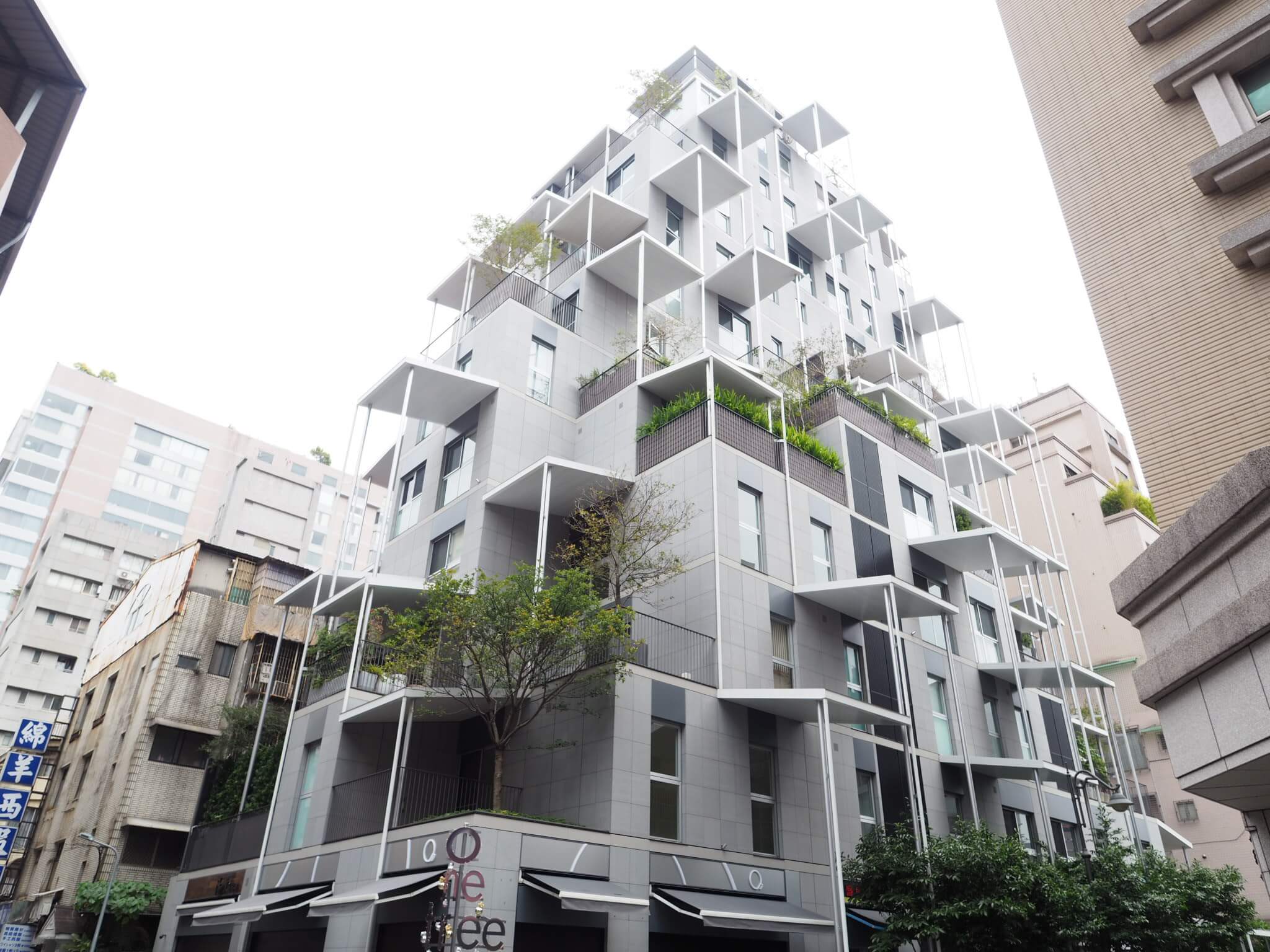 しかし台北にあるということで見に行ったら上手く解かれていたことが分かりました。ボックスと庇が増殖的に積層しているのですがそれはまさに台湾的スケールで街の路面店が積み重なったような馴染みのあるスケールなのです。