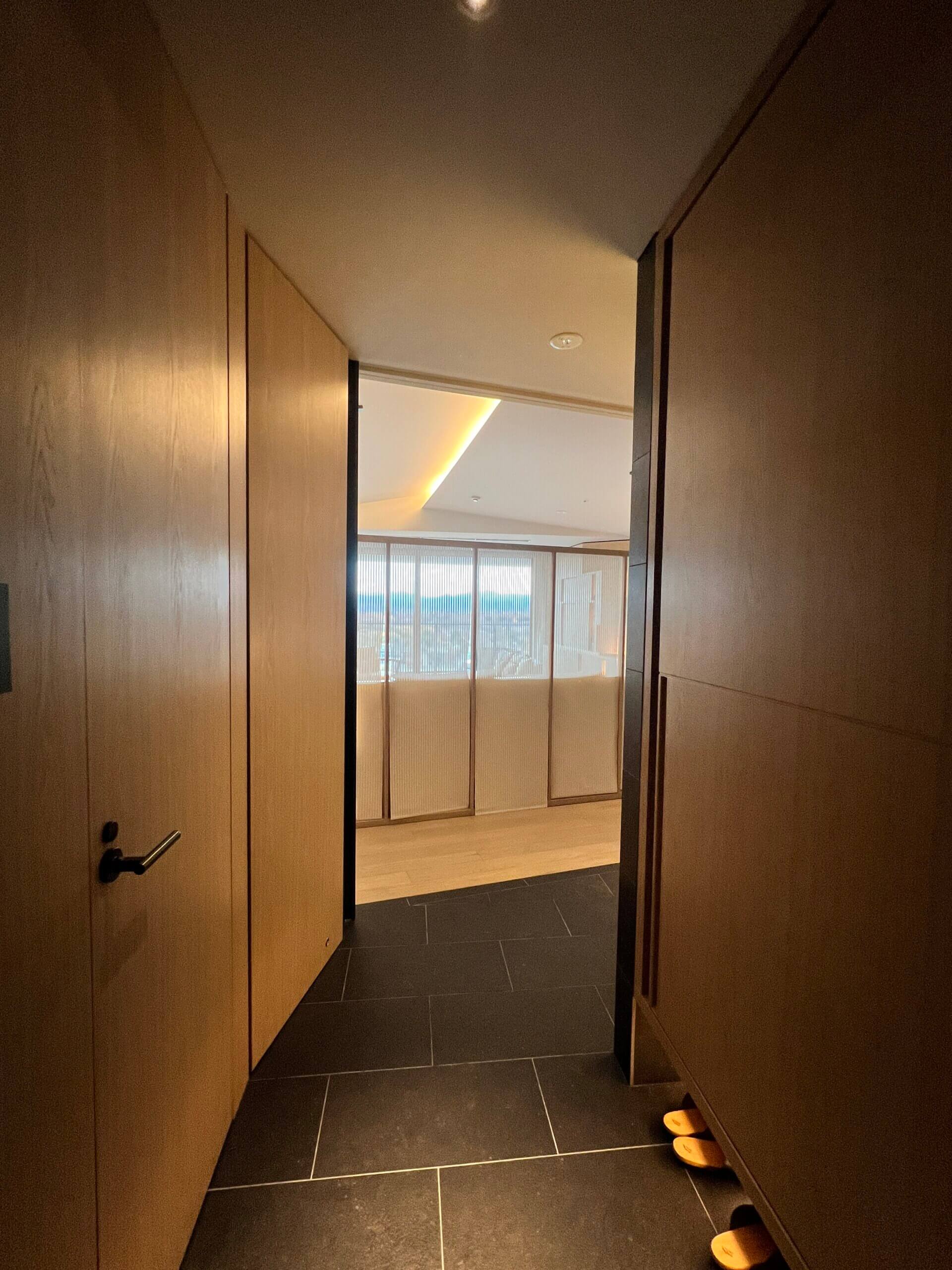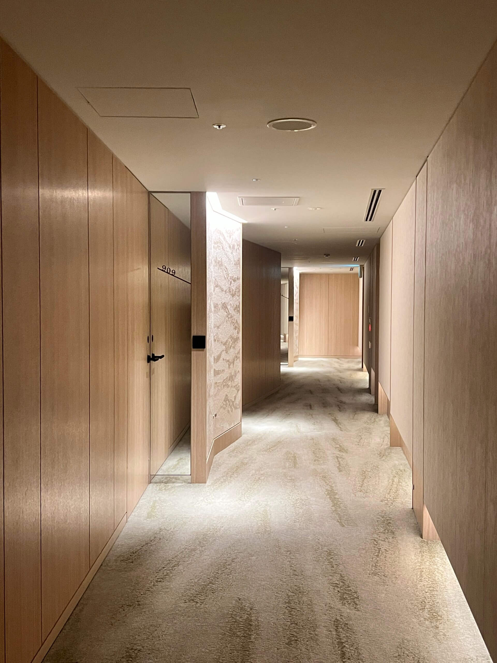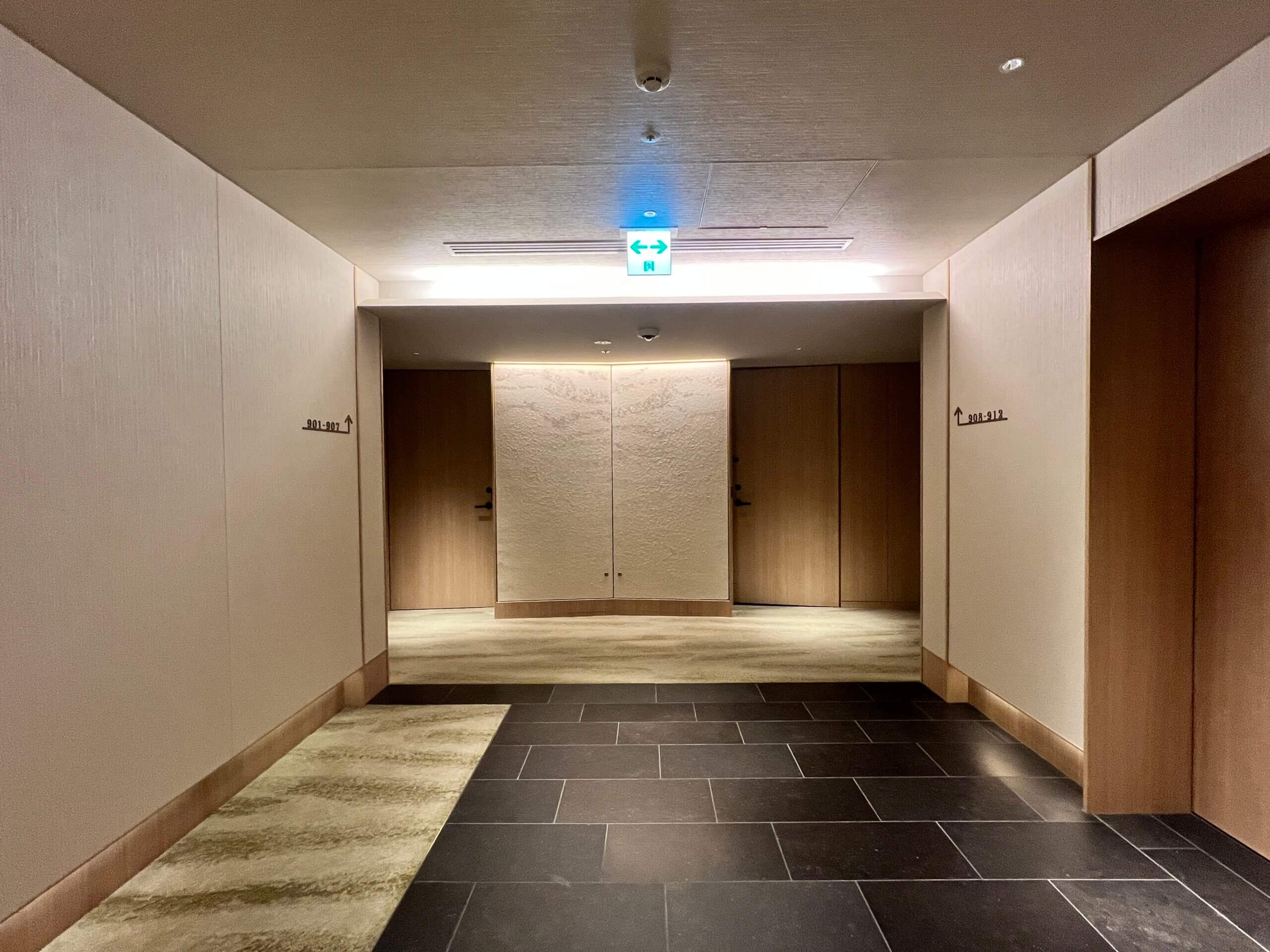 このフロアは廊下が長いのですが、それを逆手に取って、期待感を存分に高めるインテリアを味わえる贅沢な場所になっています。