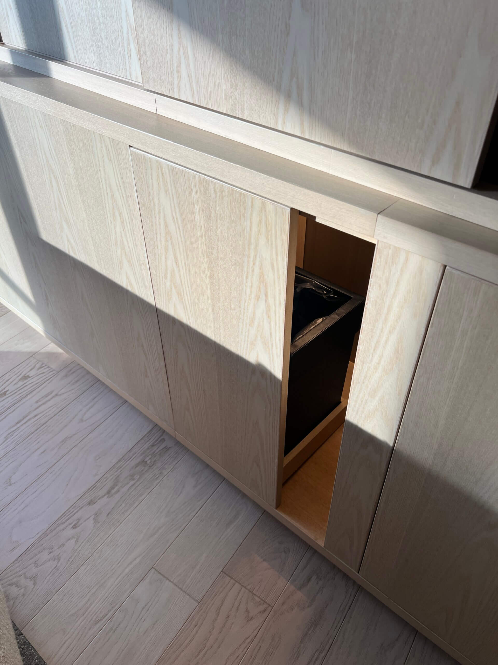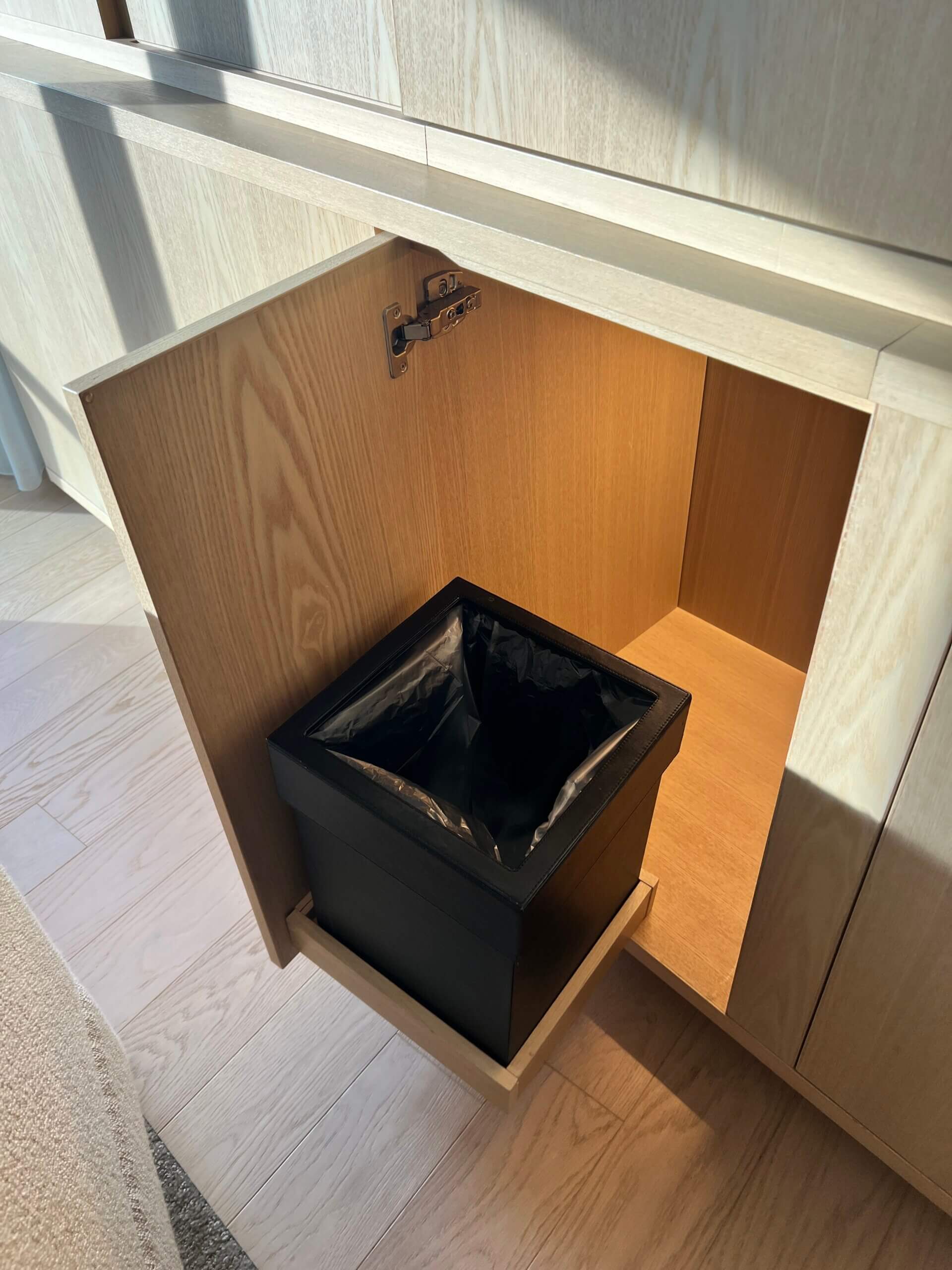 扉を開けると扉にゴミ箱がくっついていました。どこに何があるのか探すのが楽しくなりました。