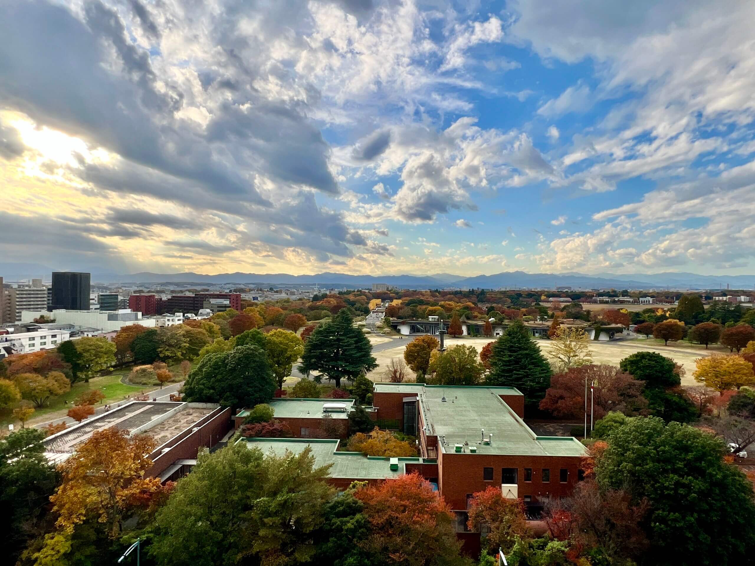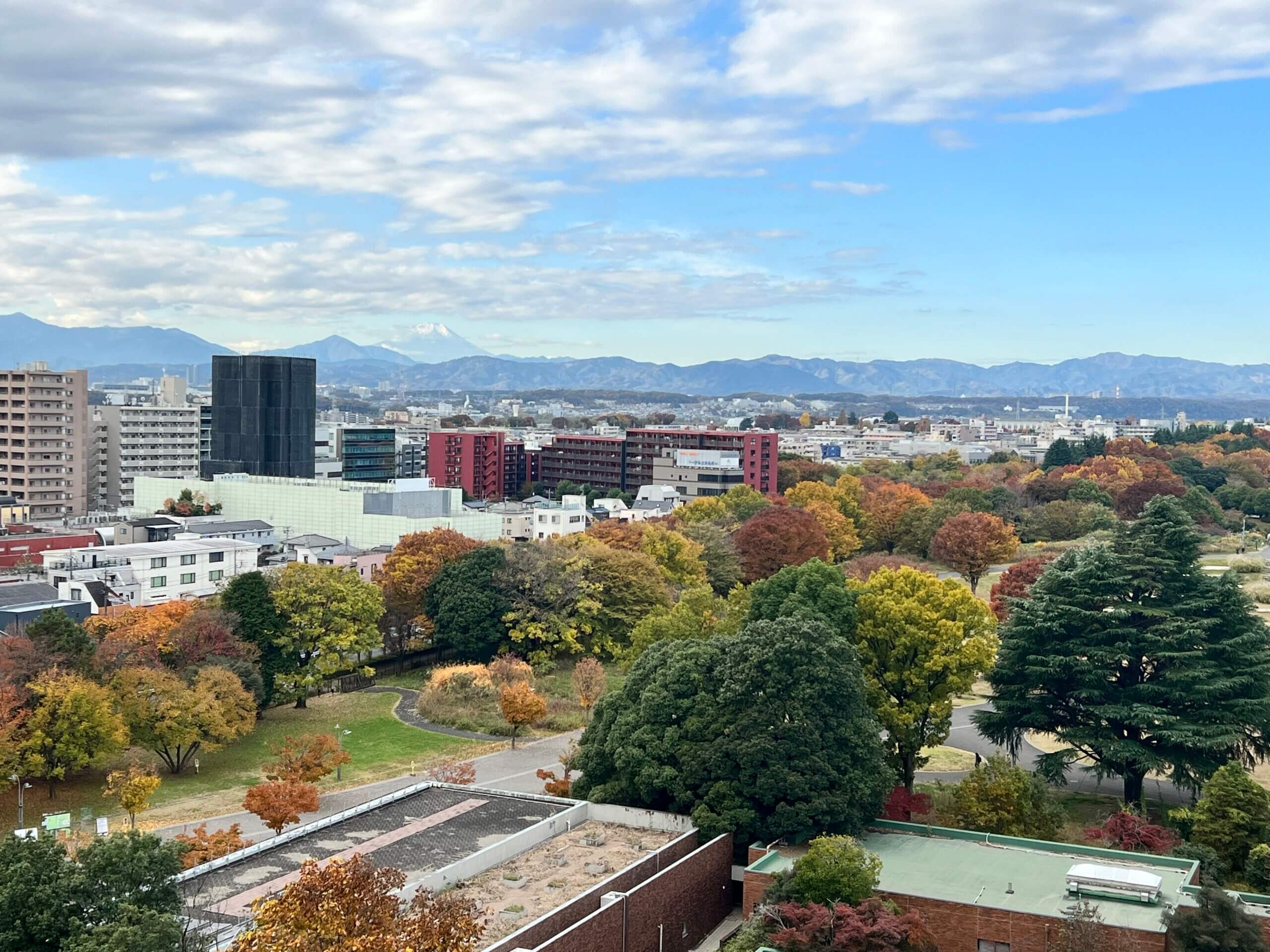 昭和記念公園が一望でき、さらに遠くには富士山も見える最高の眺めです。