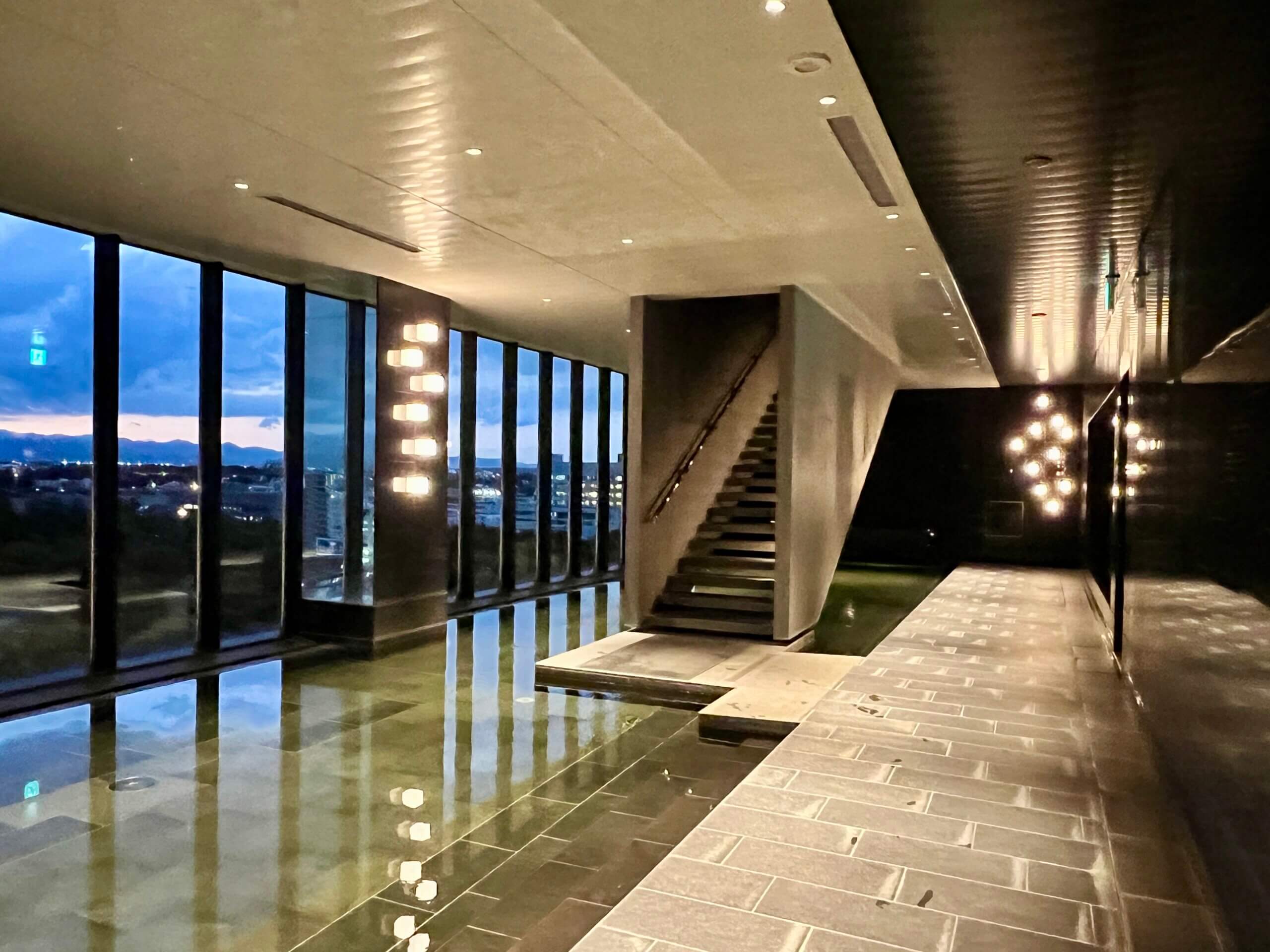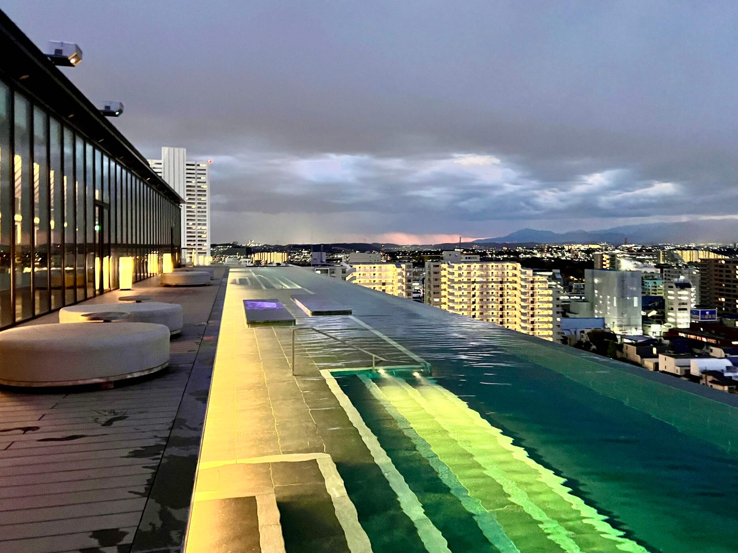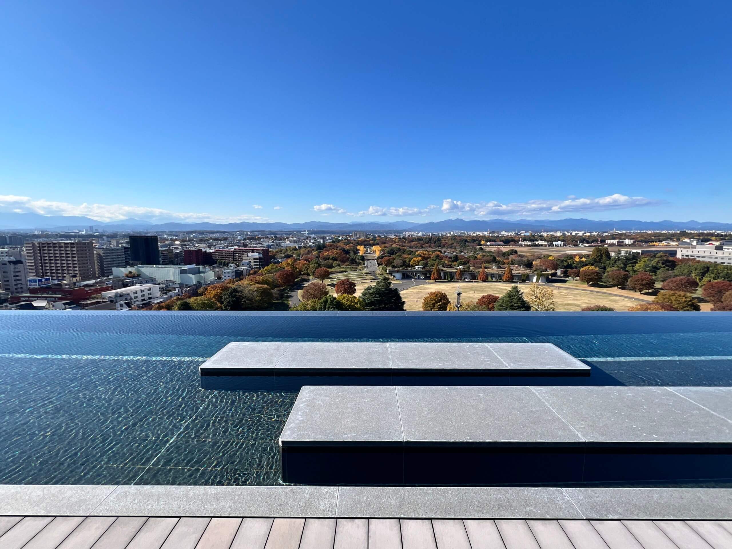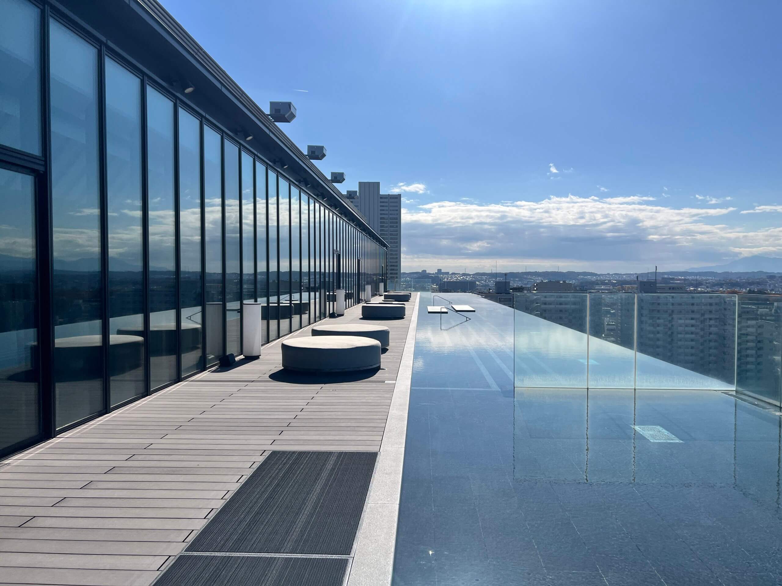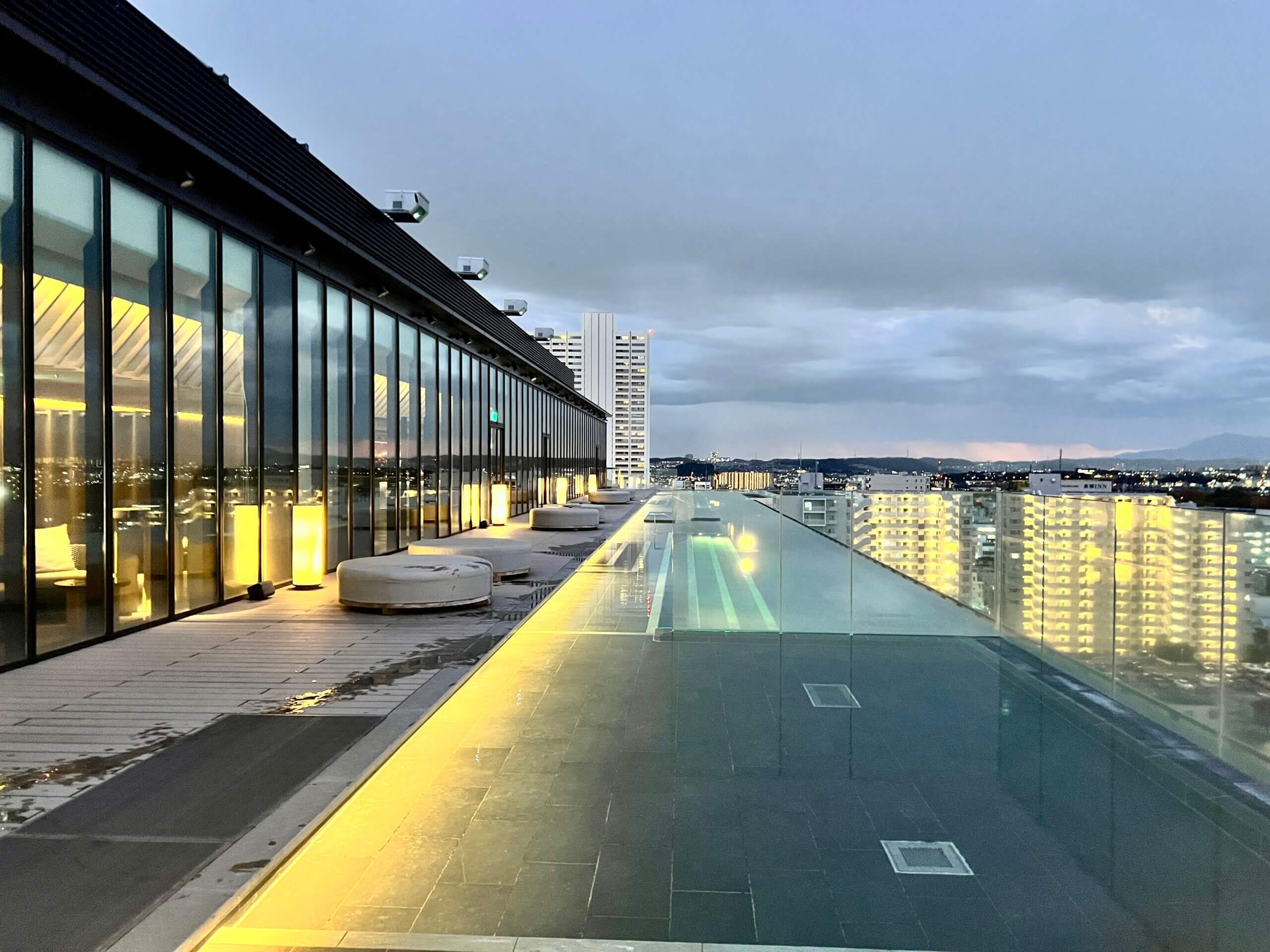 空間の正面に構える階段を上がると、屋上(11F)のインフィニティプールへと出られます。