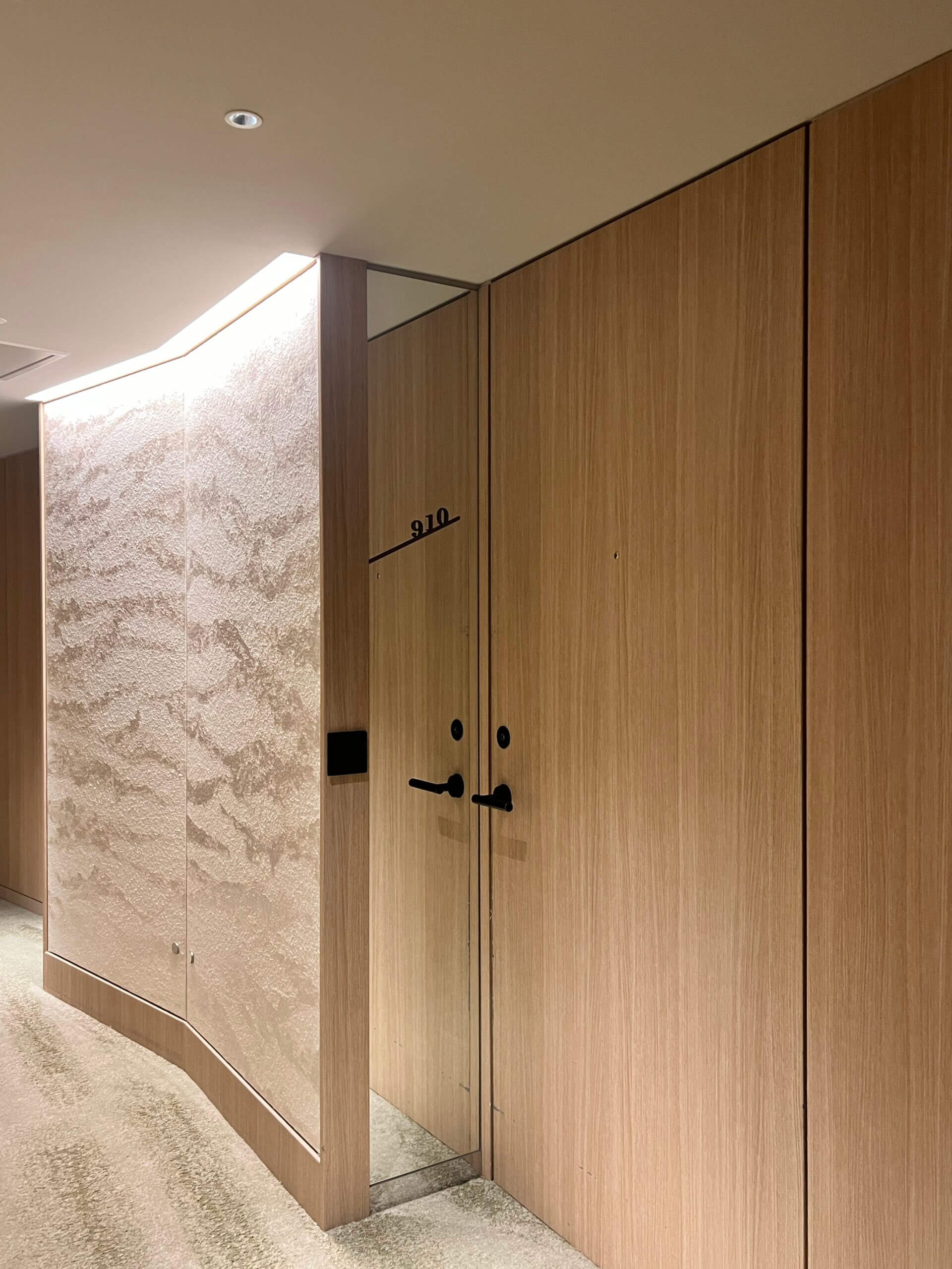 客室フロアに到着すると、他のホテルとは一線を画すデザインの技が見られました。