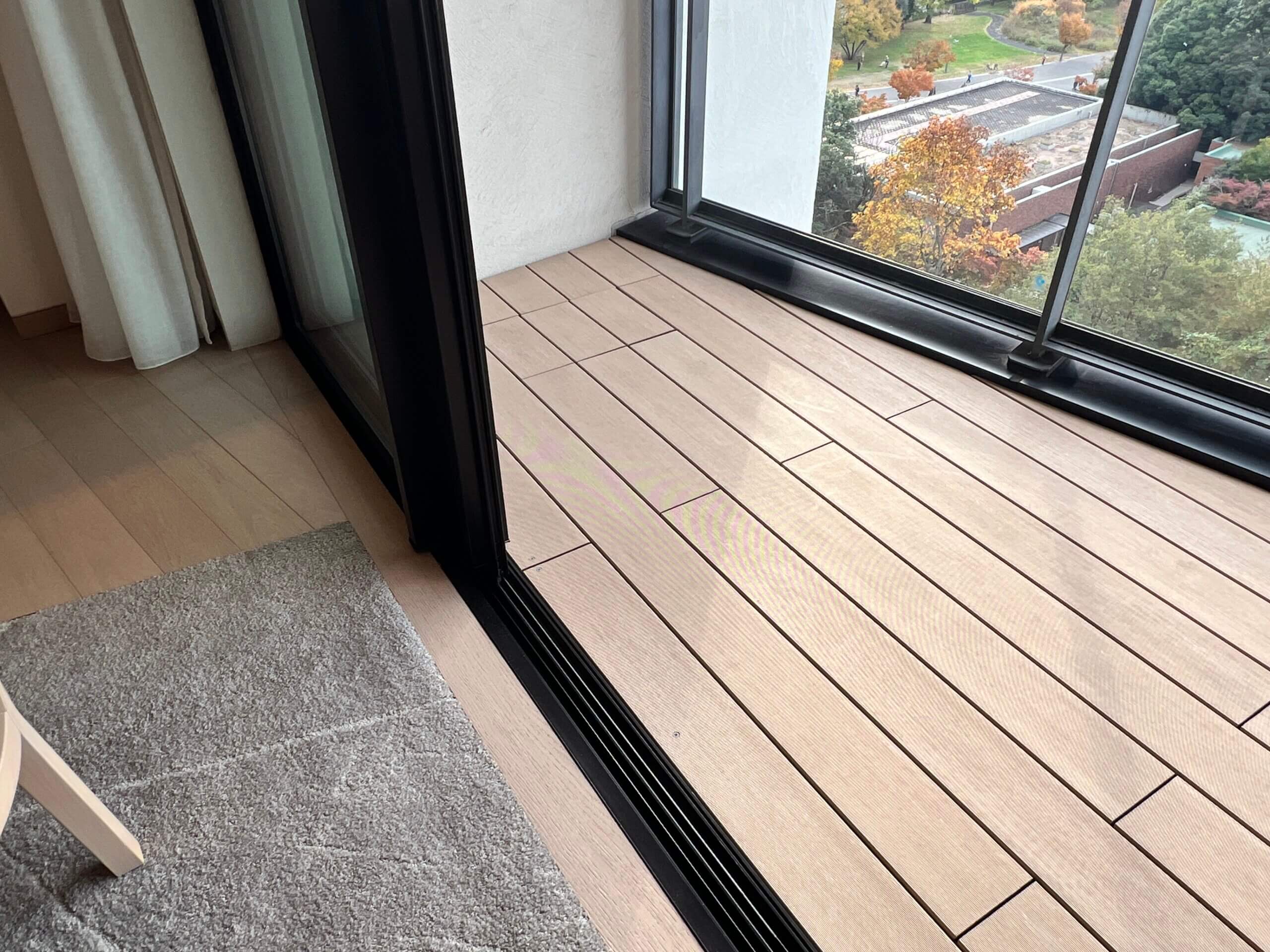 バルコニーはウッドデッキになっており、室内とフラットのため内外の一体感があります。