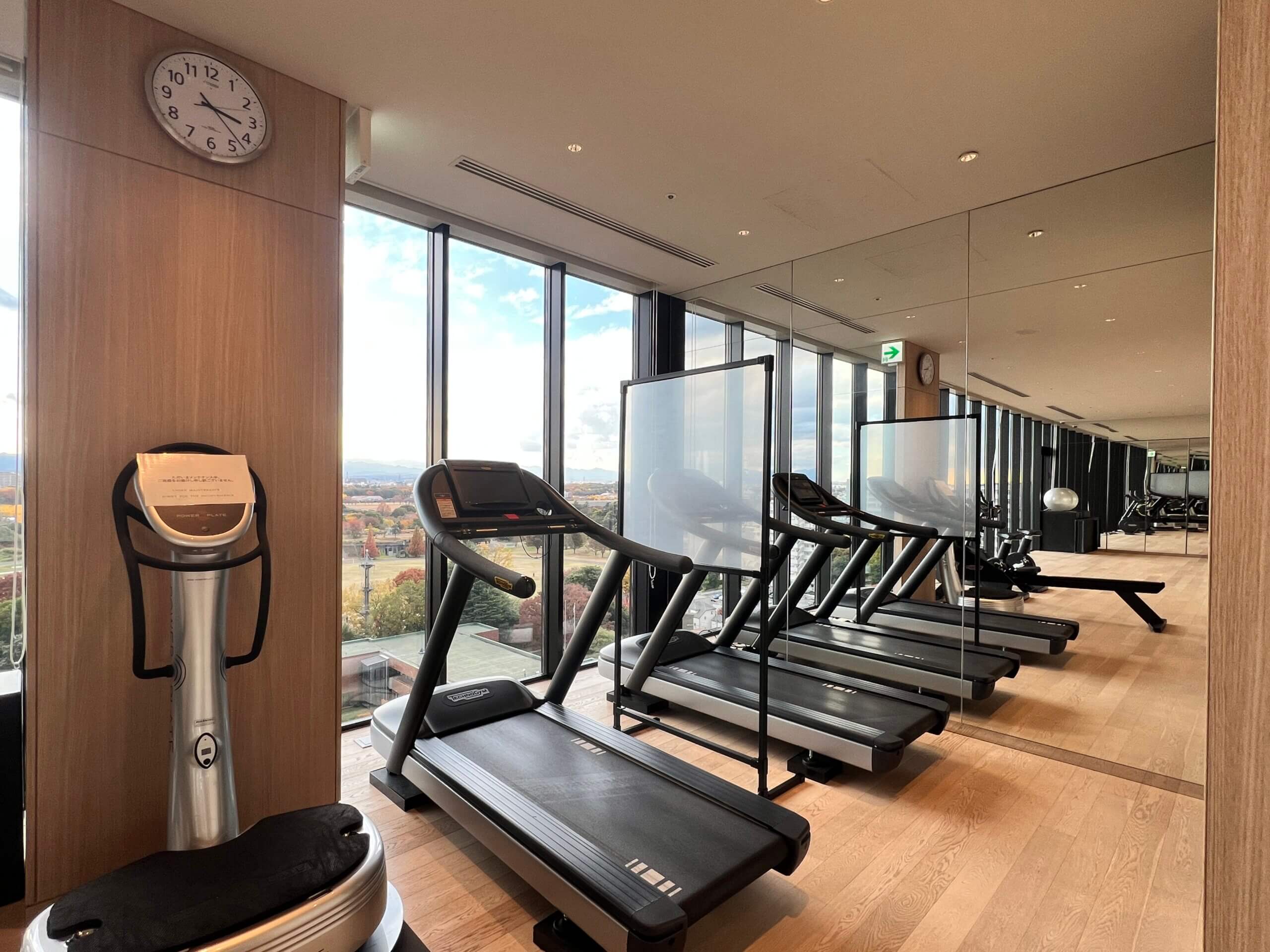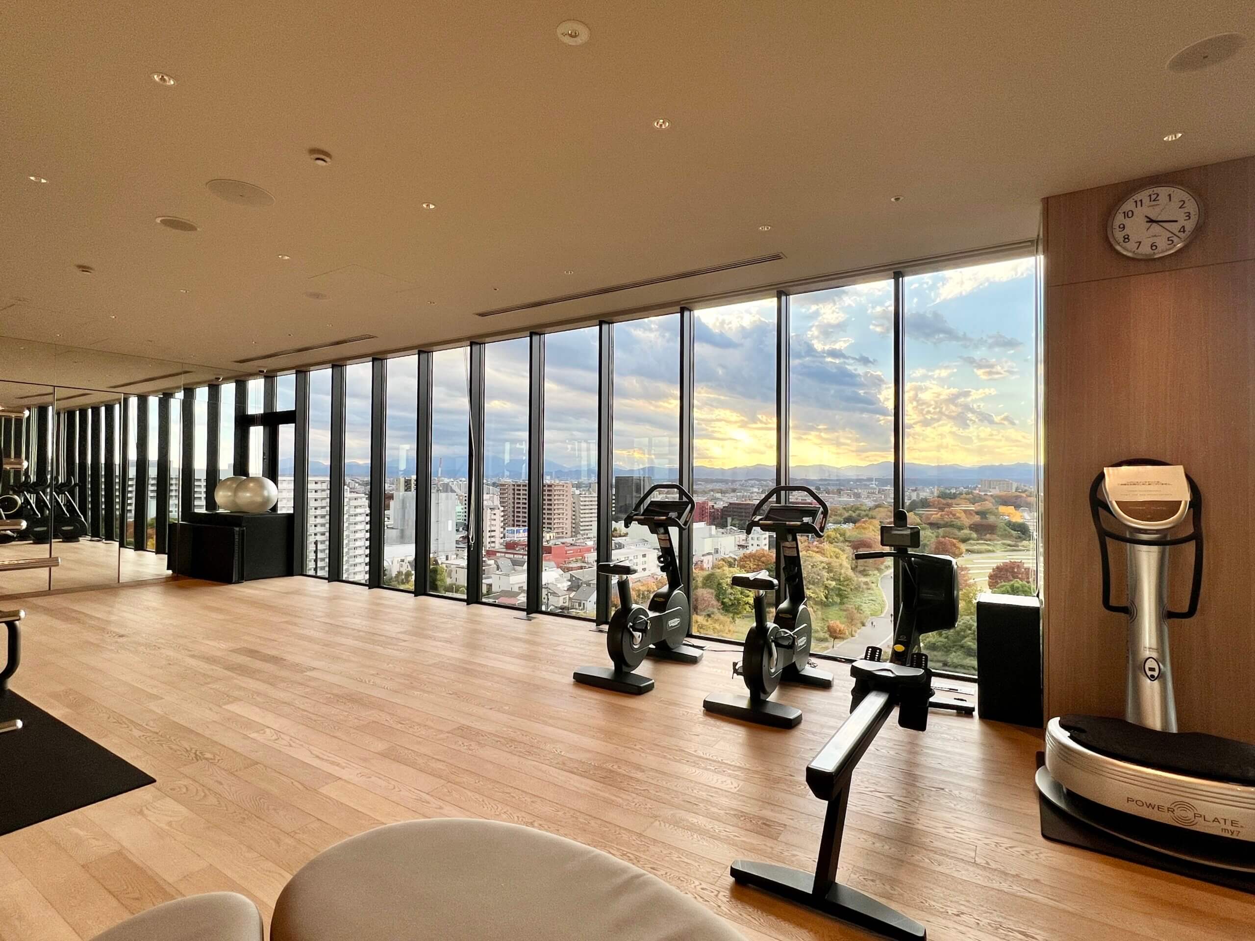 ジムはストレングスマシンを置いていないので器具は少なめですが、客室同様に眺めは抜群です。