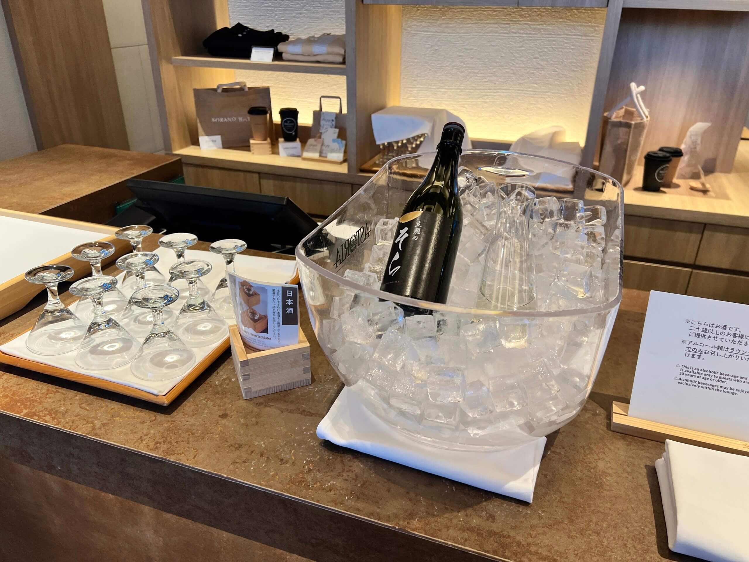 贅沢にもスパークリングワインと日本酒を飲むことができました。
